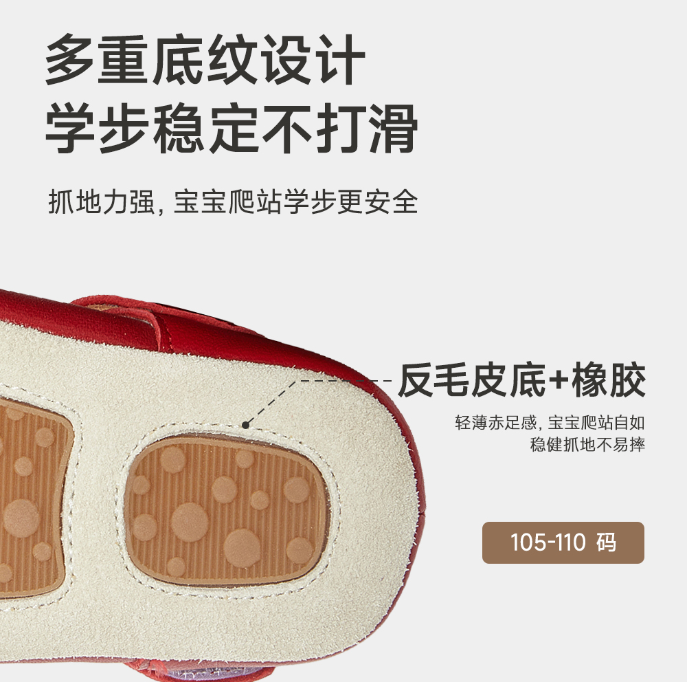 【商场同款】英氏儿童羊皮革鞋女童步前鞋新款女童鞋子