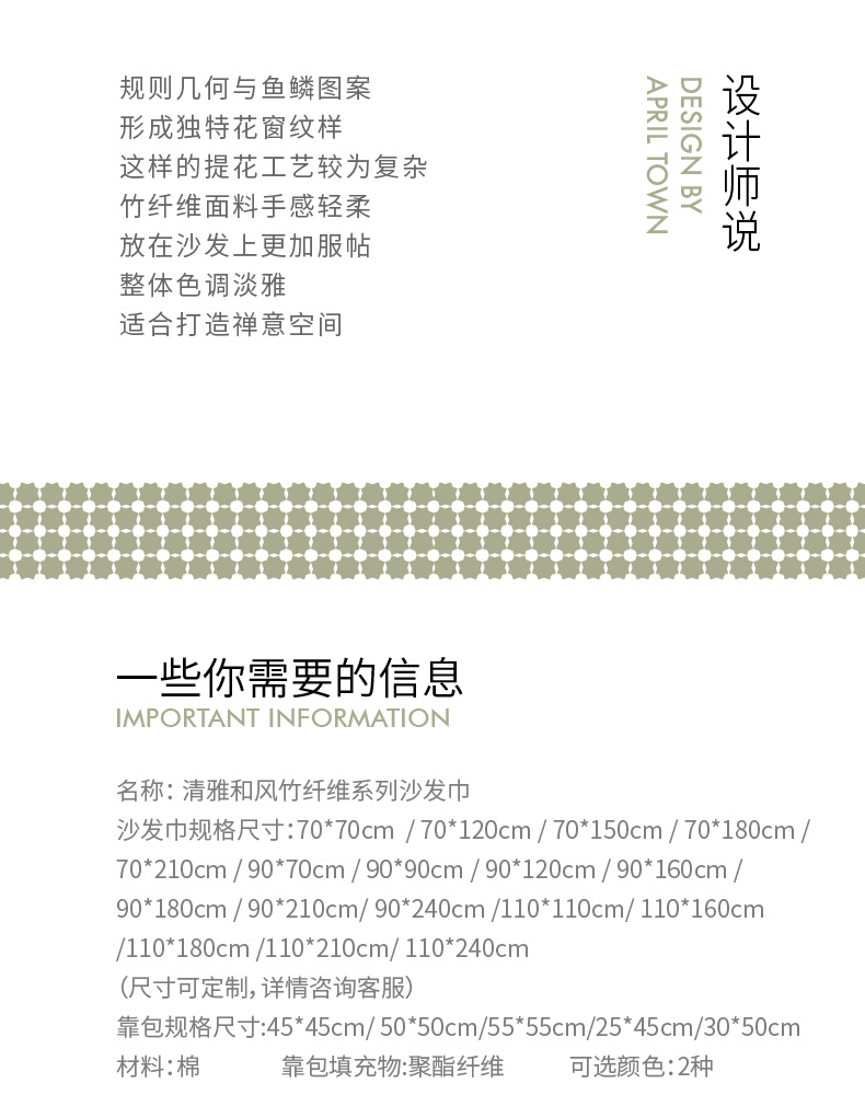 清雅和风竹纤维系列沙发巾棉四季通用高端轻奢防滑