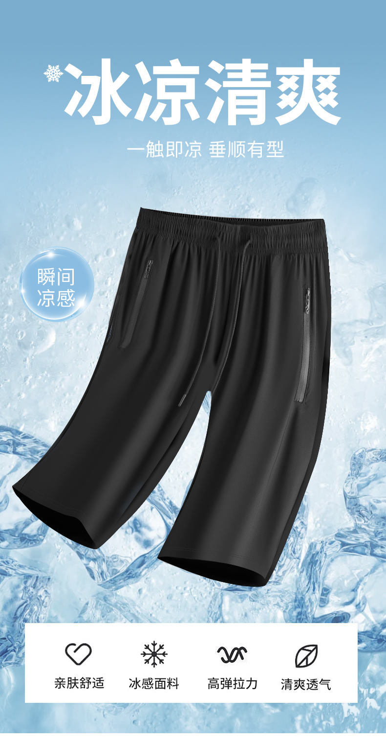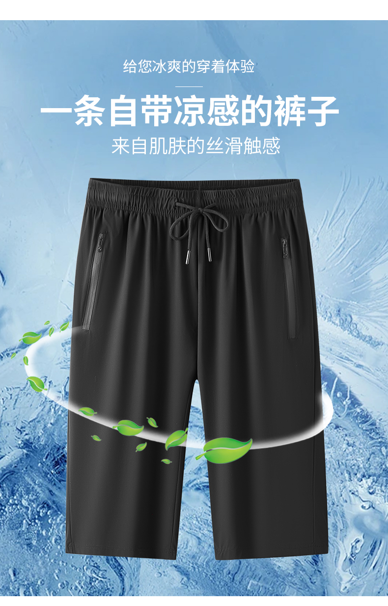 【速干】【DWN】大依优型大码休闲七分短裤冰丝中裤大号裤子弹力透气加肥加大夏季松紧腰宽松运动