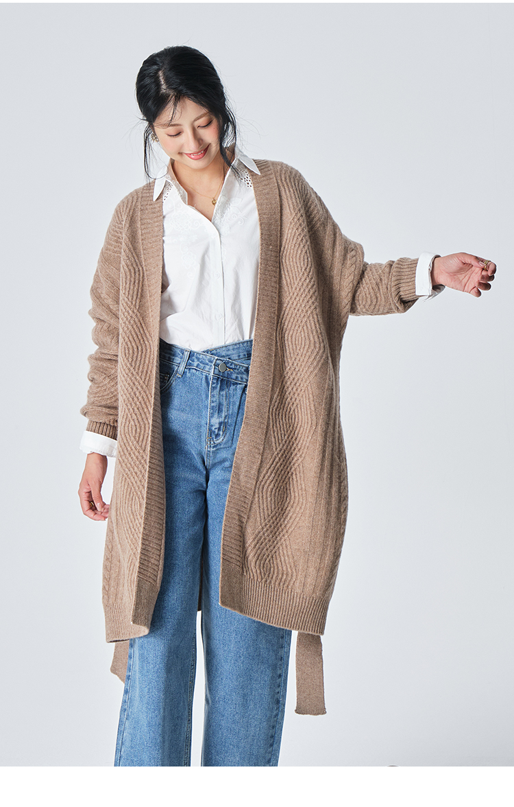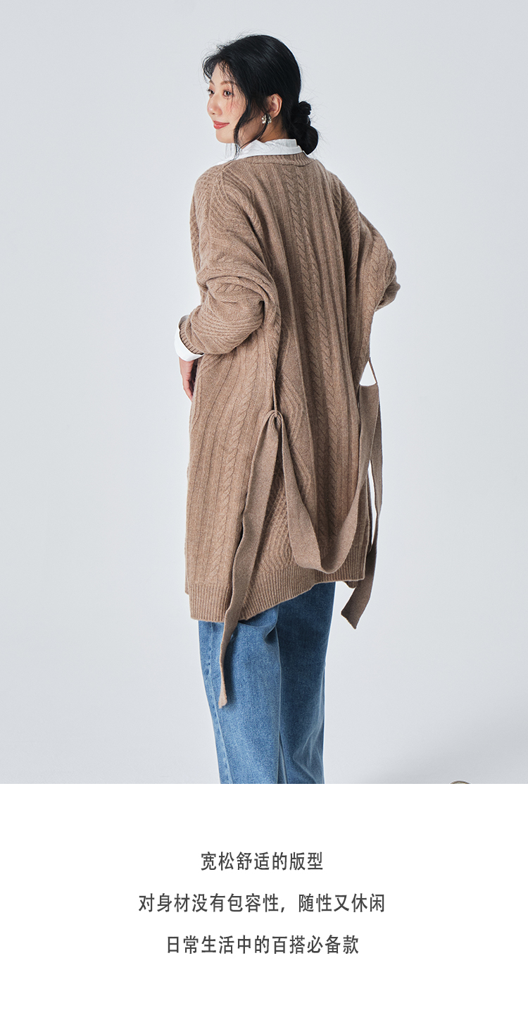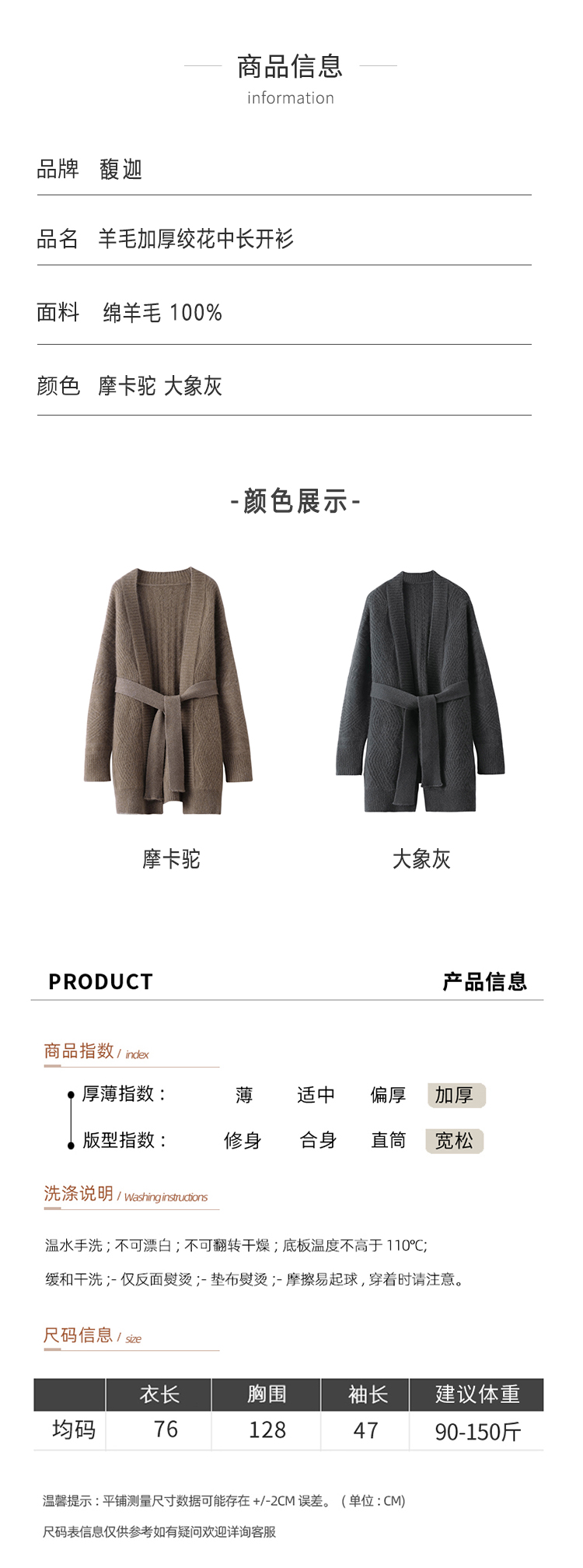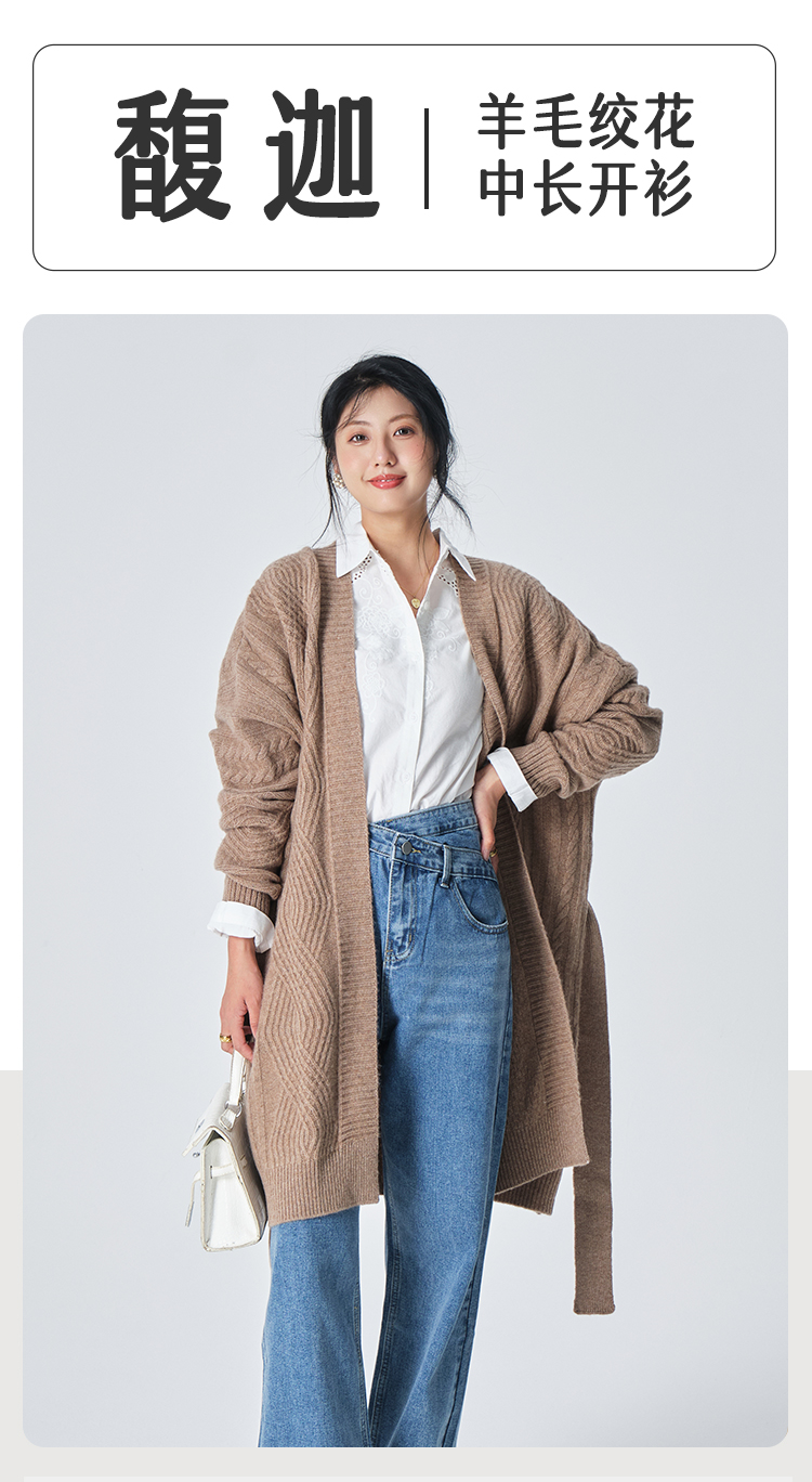 馥迦慵懒宽松绞花羊毛长开衫 NG-856