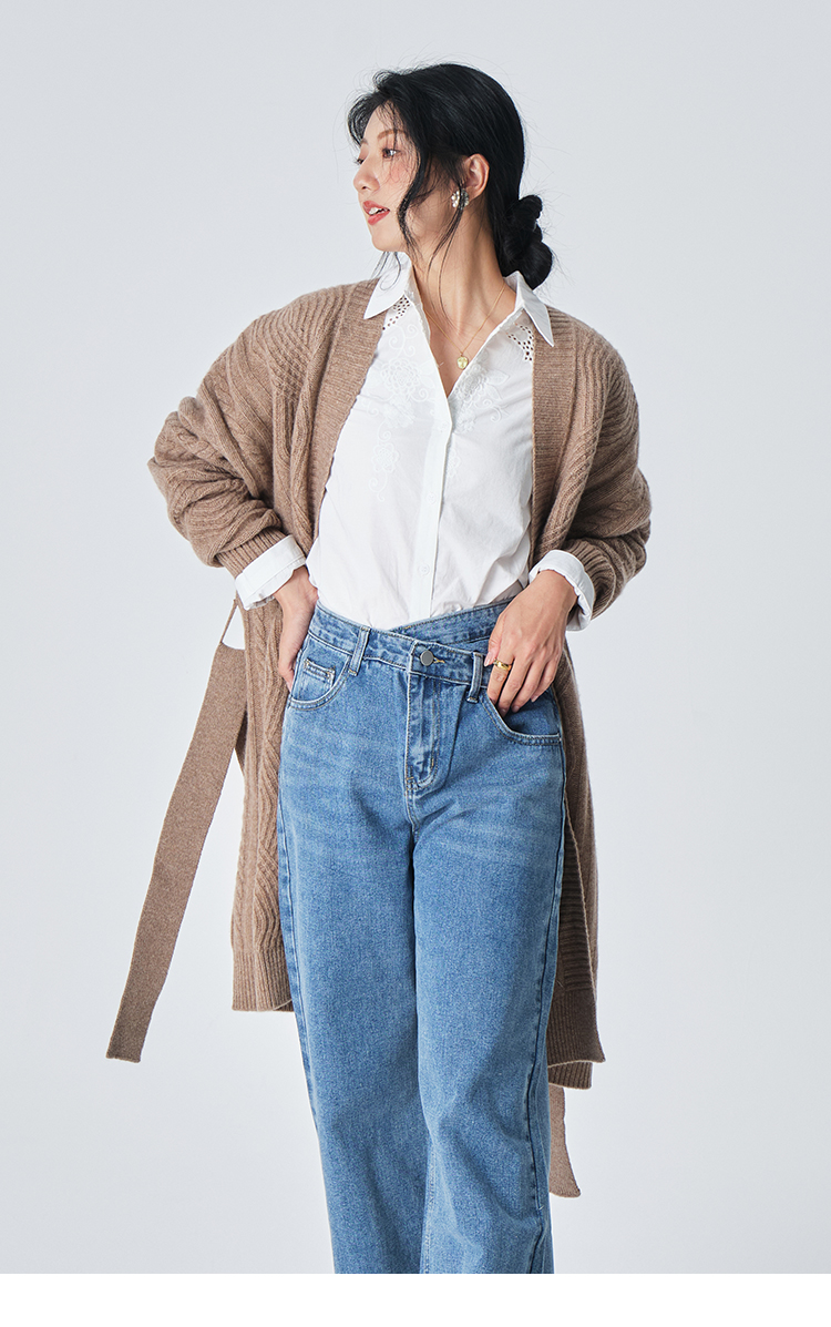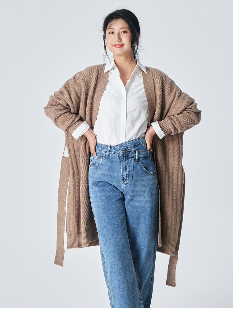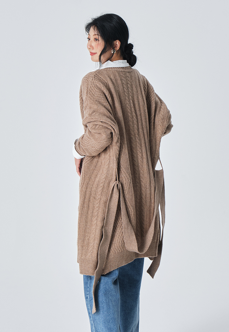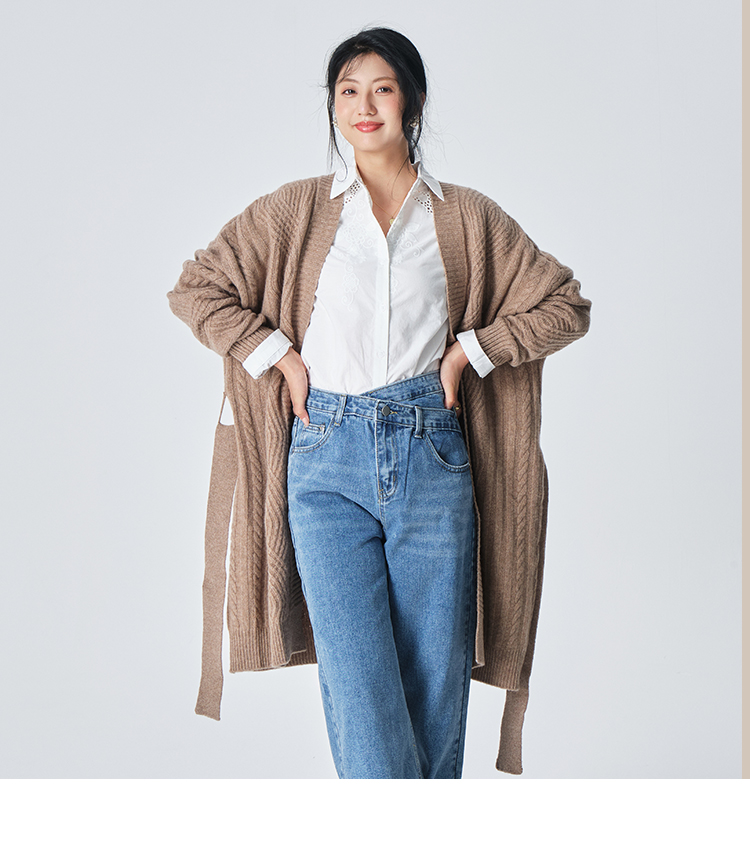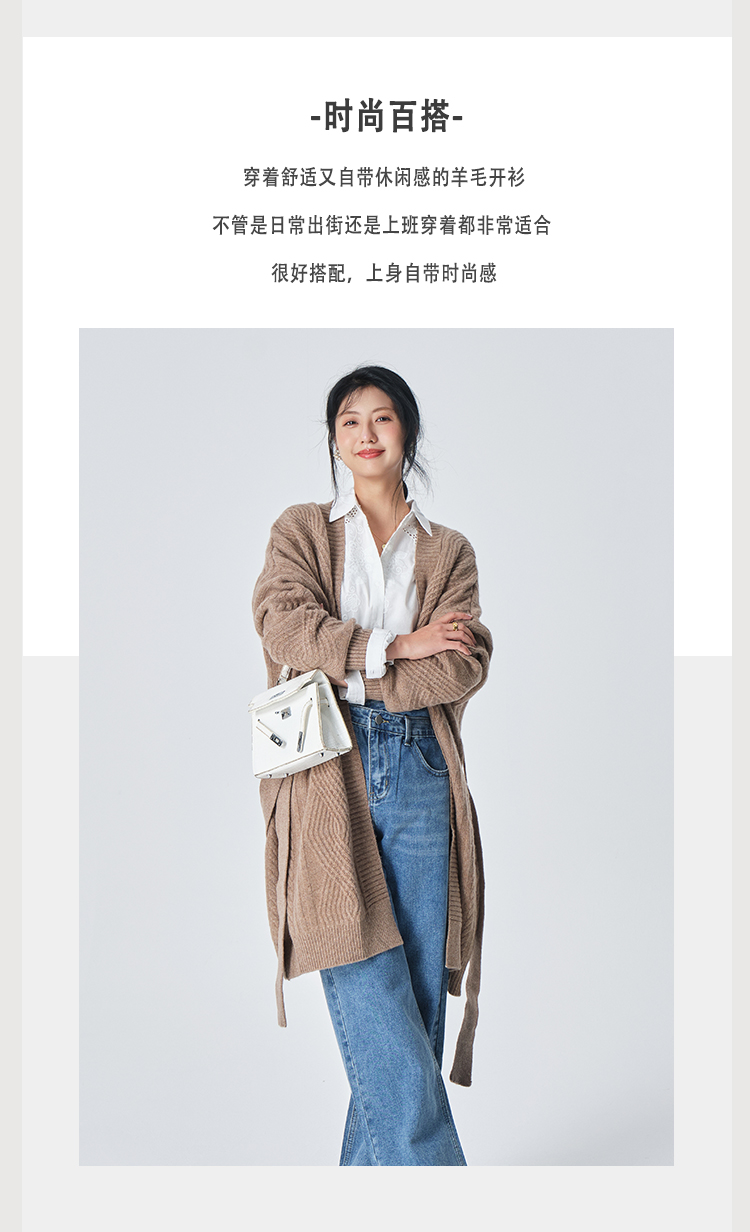馥迦慵懒宽松绞花羊毛长开衫 NG-856