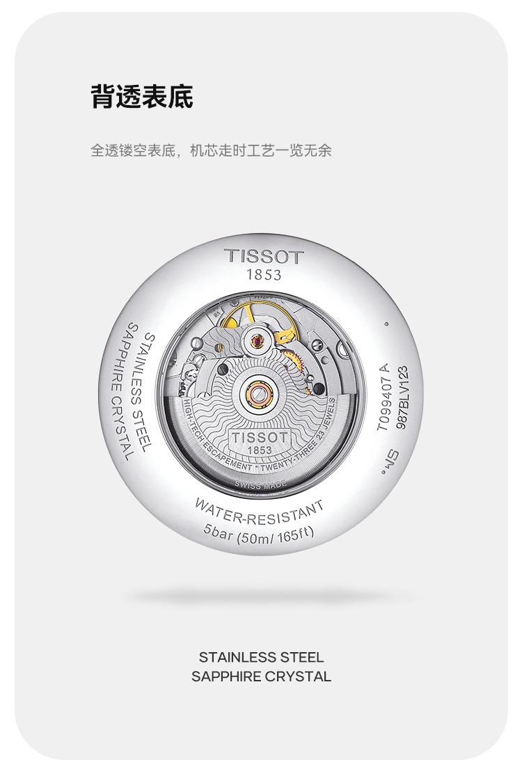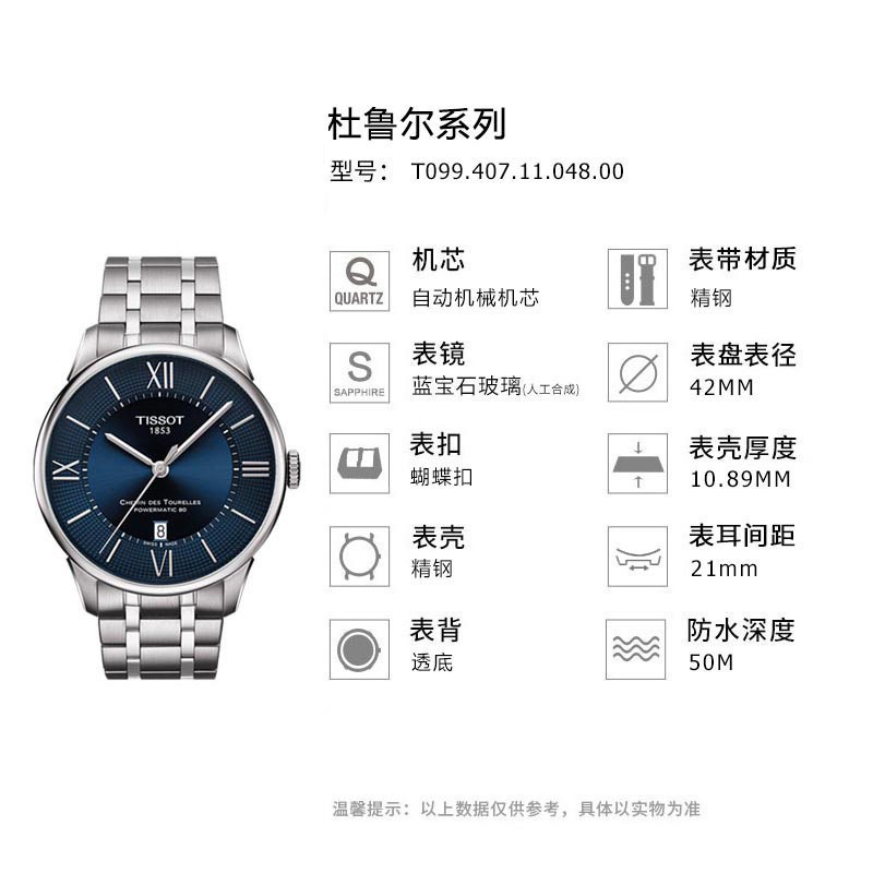 【时计廊】瑞士手表杜鲁尔系列时尚自动机械男士手表 蓝盘钢带 T099.407.11.048.00