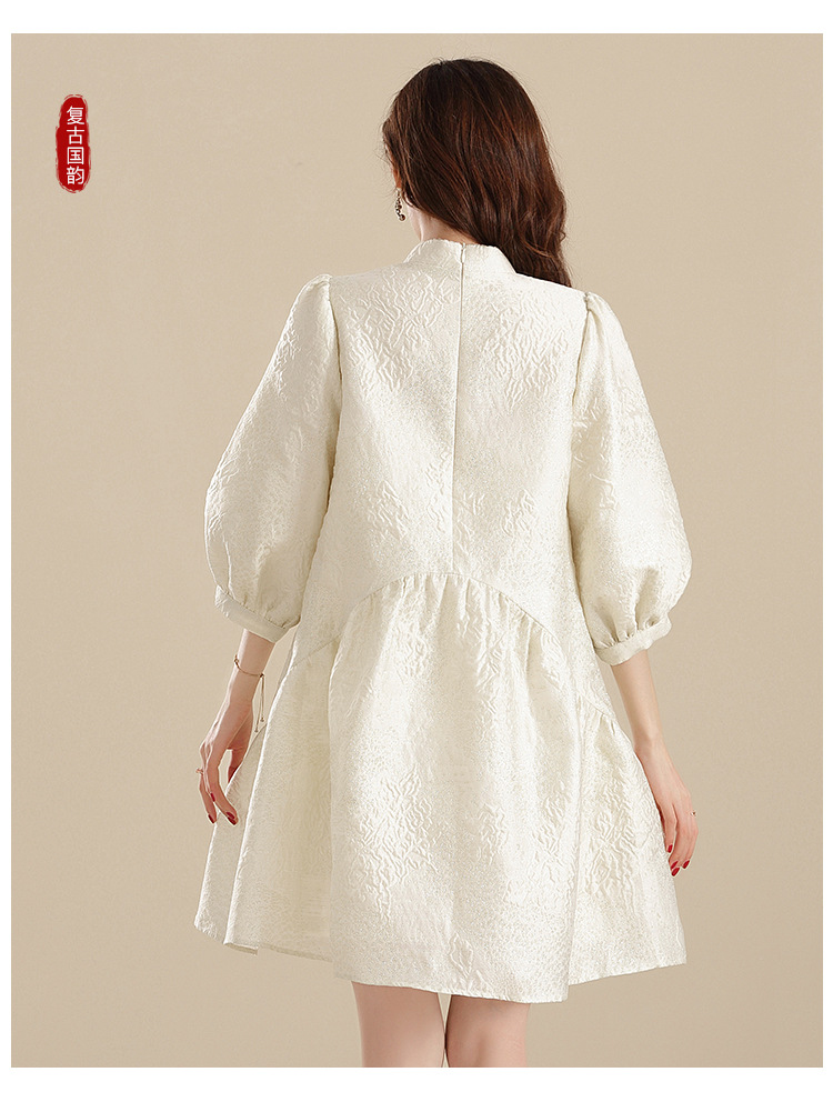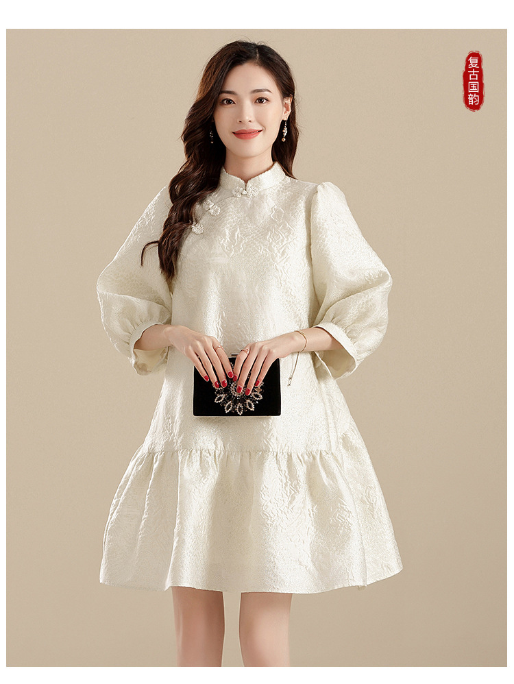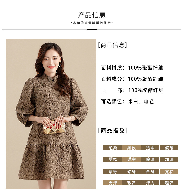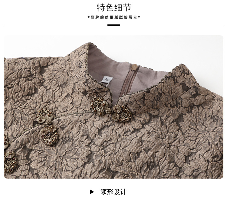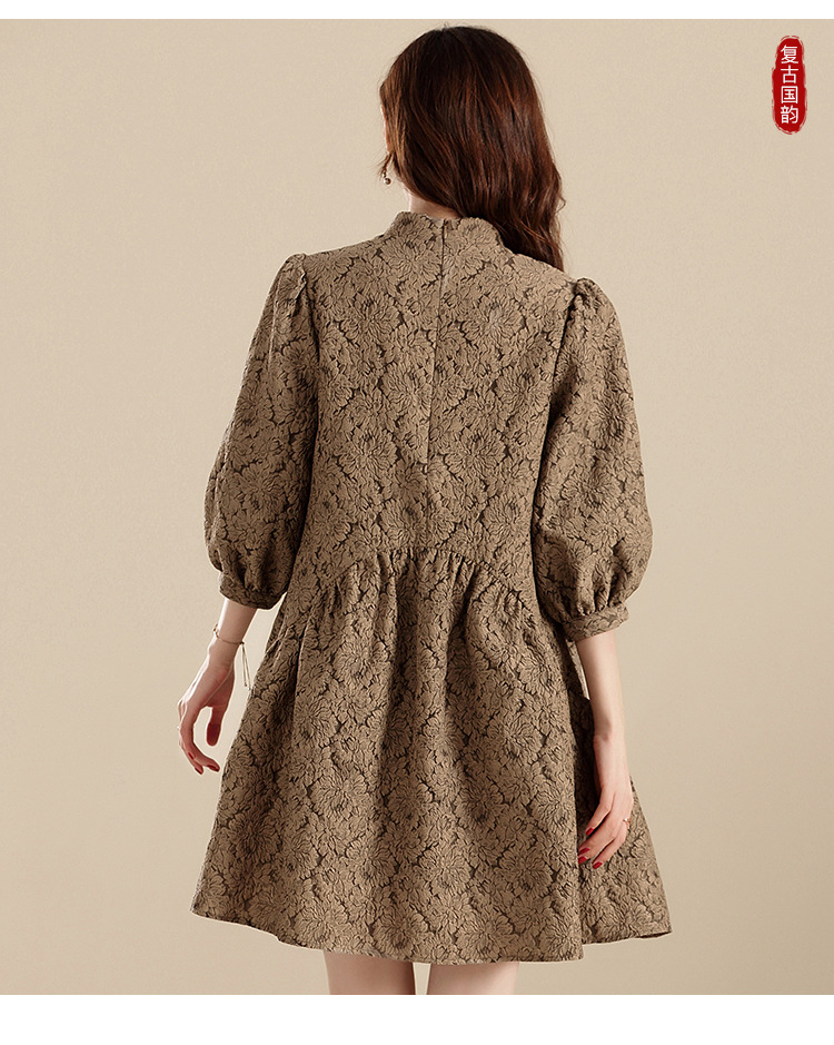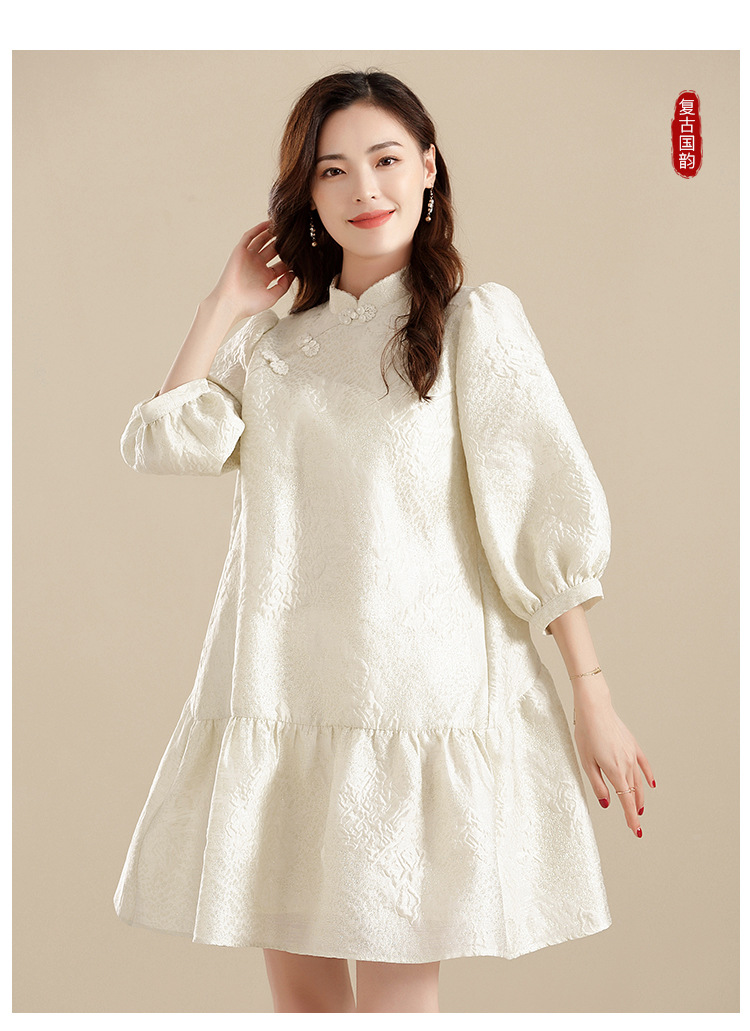 上海旗袍厂AYK-QF-210701金丝牡丹宽松旗袍改良时尚灯笼袖拼接下摆a字连裙2021秋国潮女装