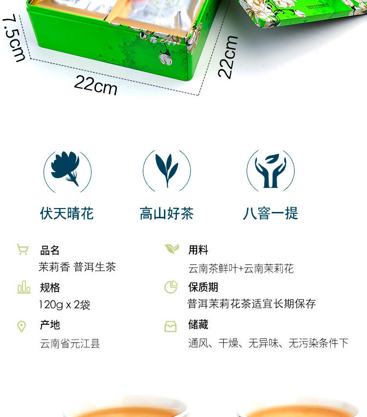 热销-沧元号茉莉香(生茶)120gX2 大叶种普洱茶叶 铁盒精装散茶