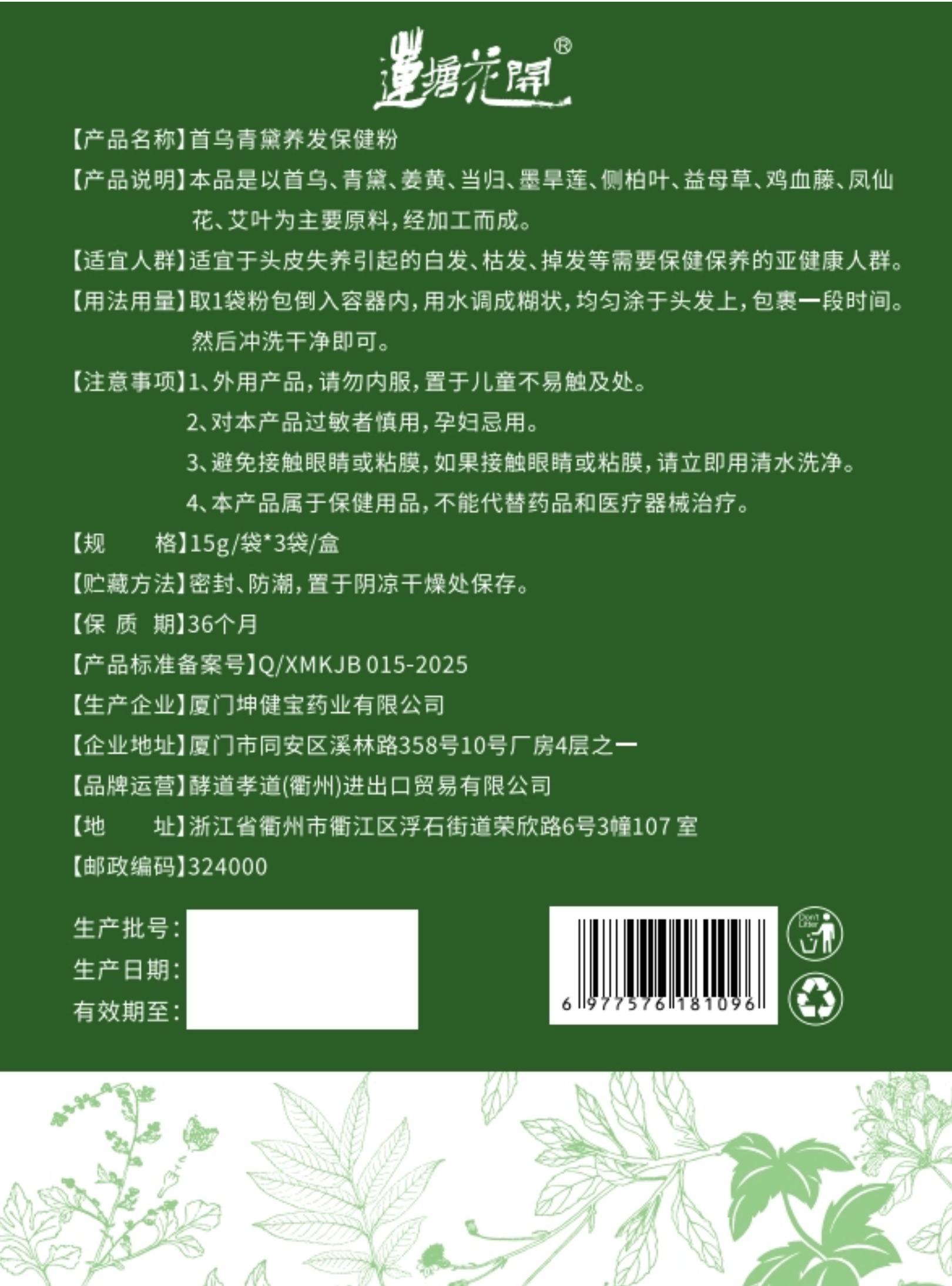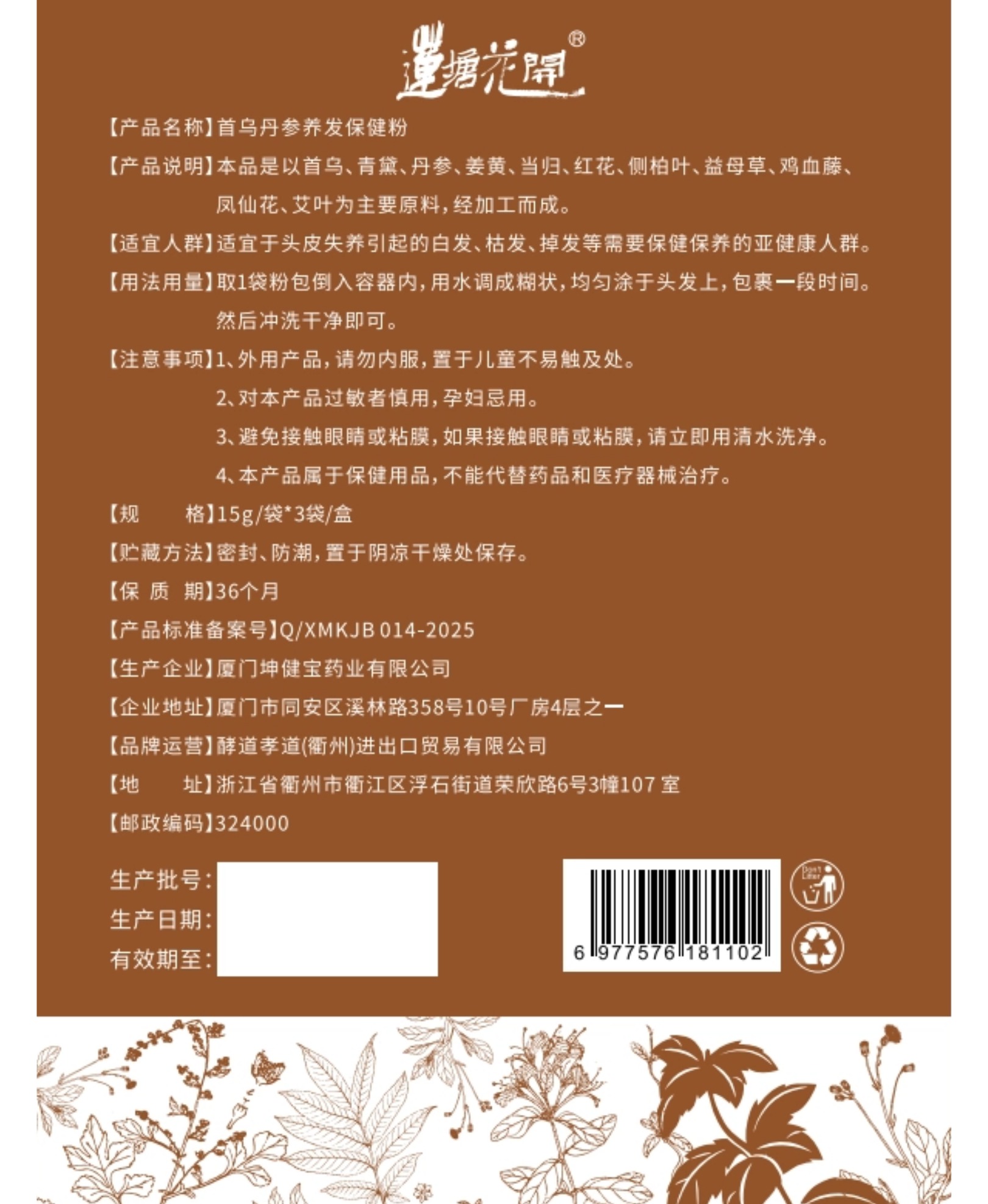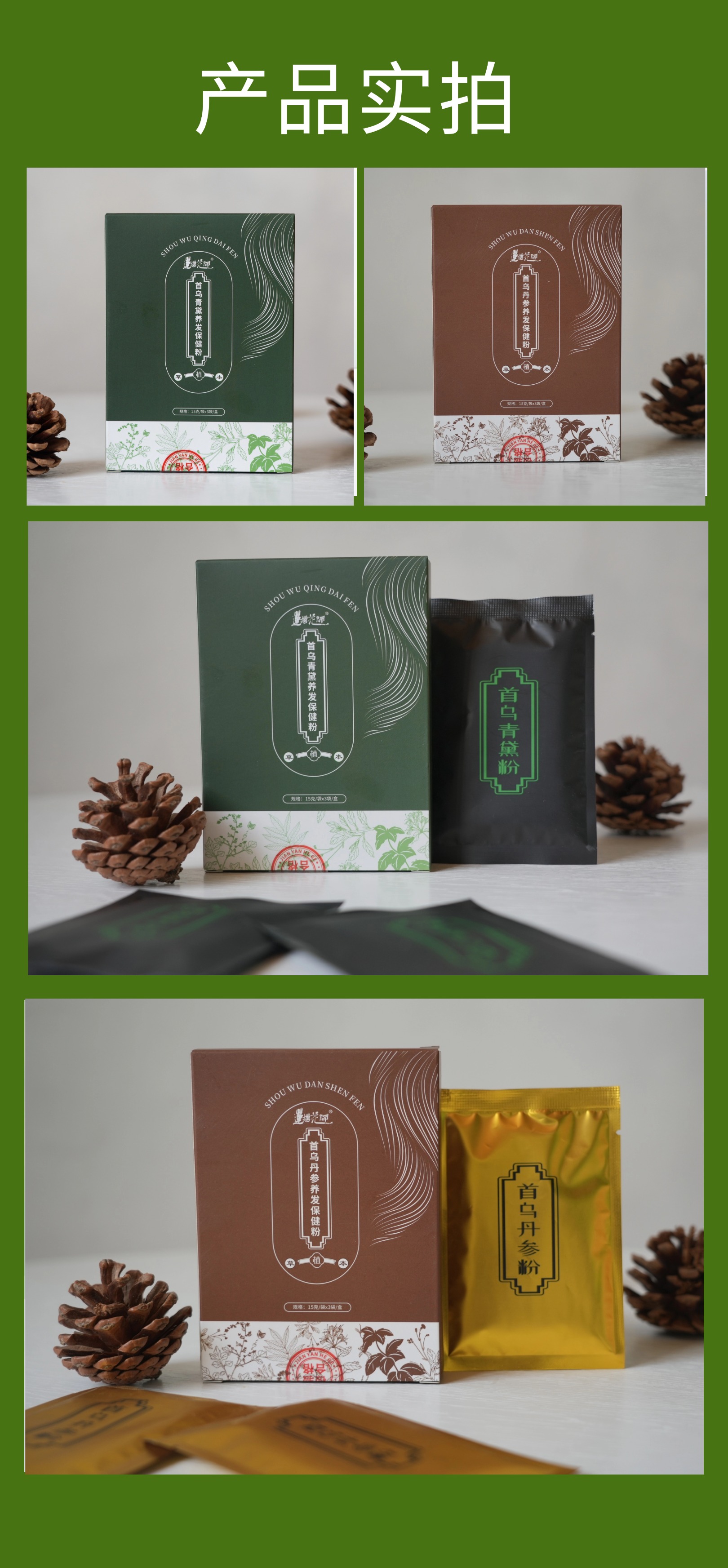 植物染发粉 | 15g*3袋/盒 棕色&黑色 用于白发及浅色发系染色 染色可维持约1-2个月「染发粉用开水冲调成糊状,粉水比例1:6,需完全调和无疙瘩,均匀涂于头发上,包裹一段时间冲洗干净即可」】