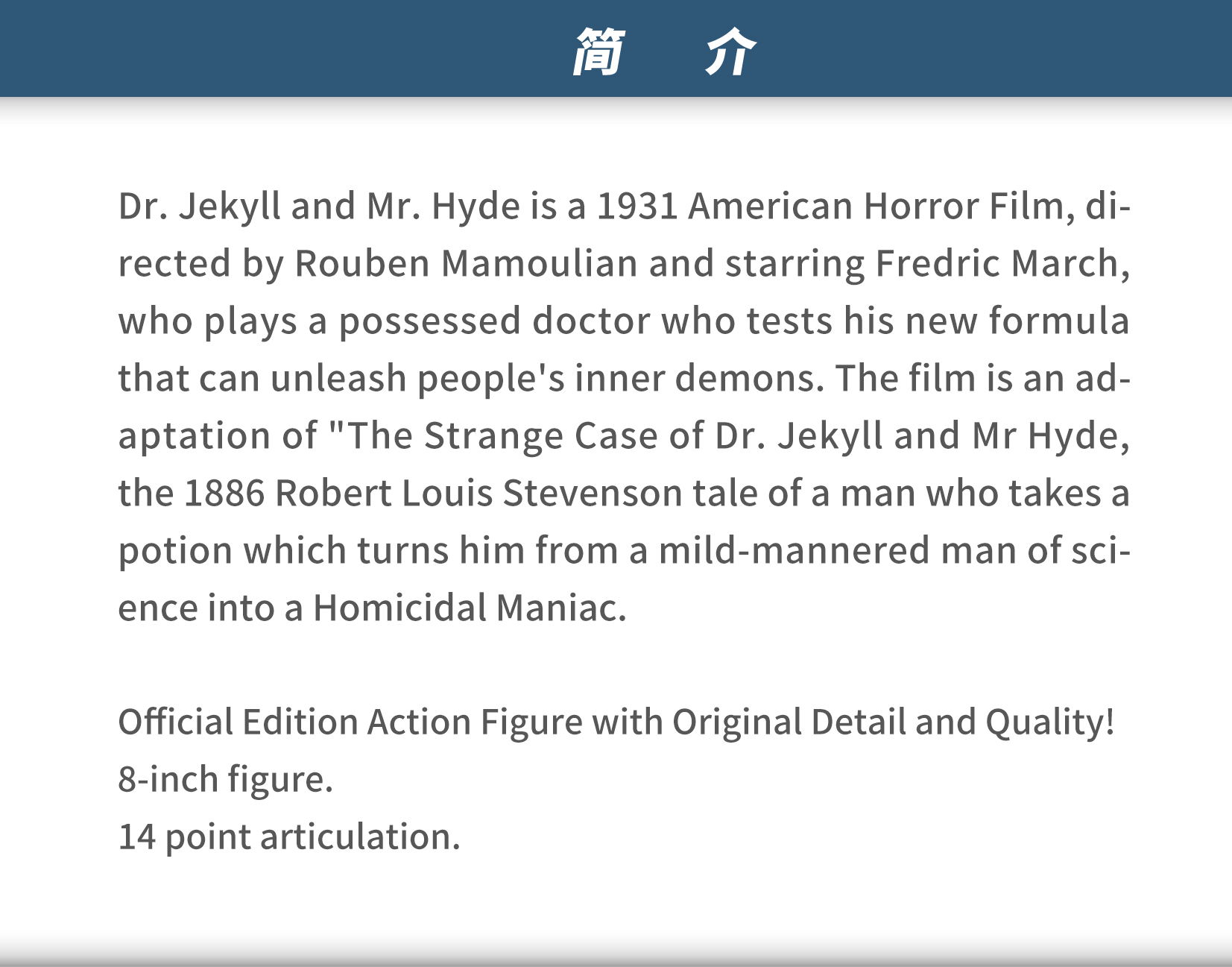 现货 Mego 化身博士 海德先生 Jekyll & Hyde 8英寸挂卡