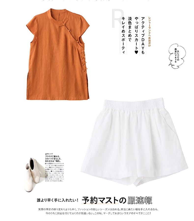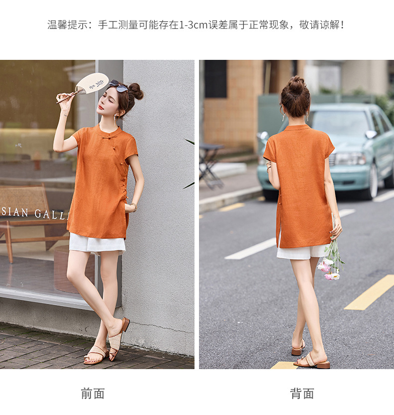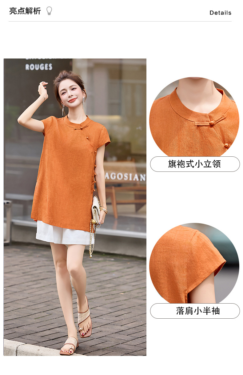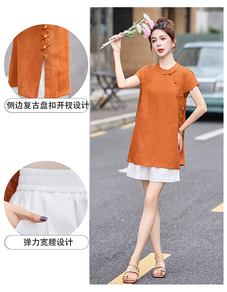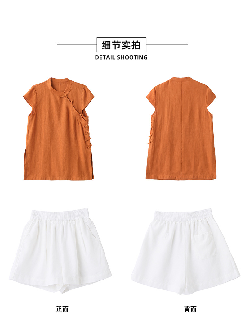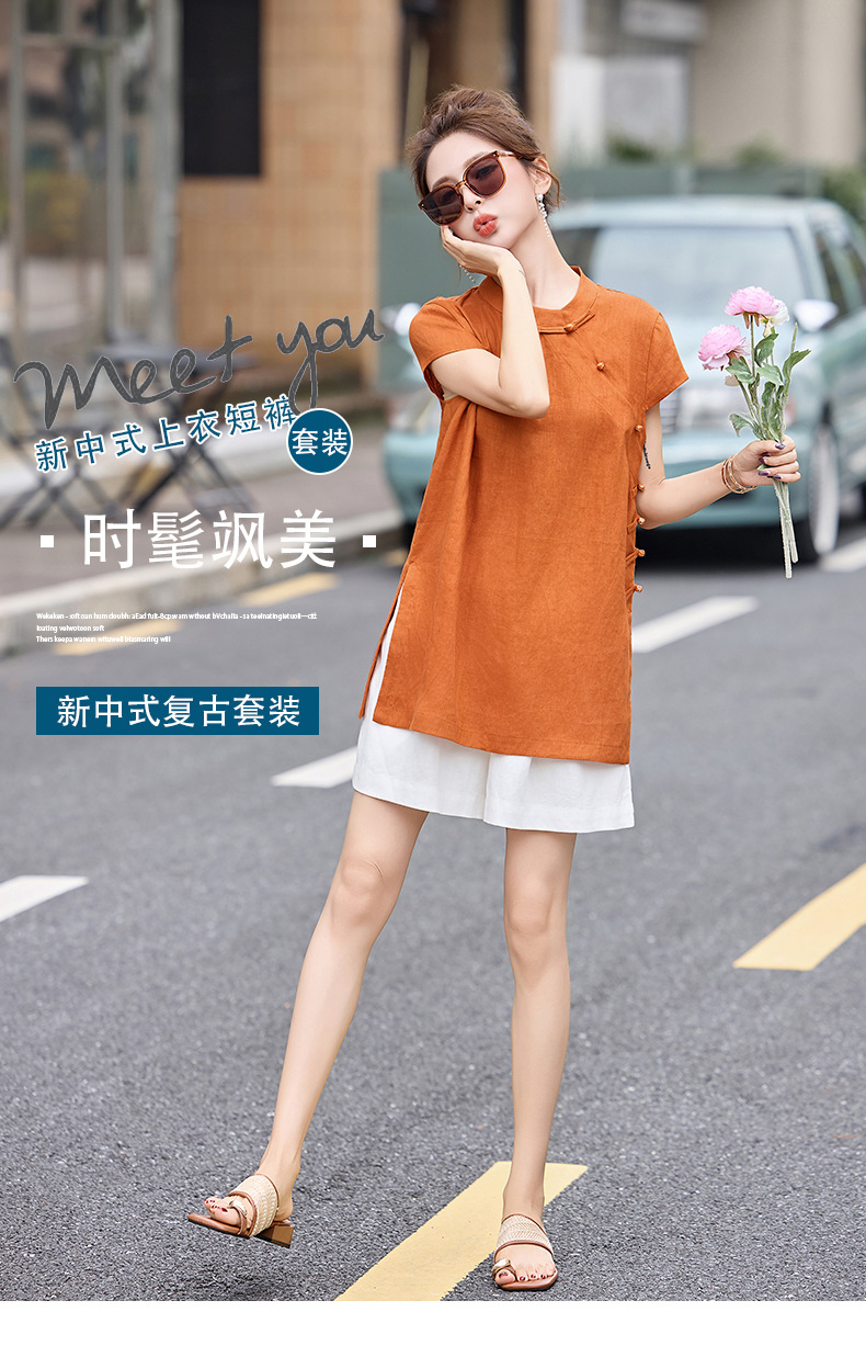 EHJY5089新中式棉麻套装女2025夏新款时尚复古洋气盘扣斜襟上衣短裤两件套