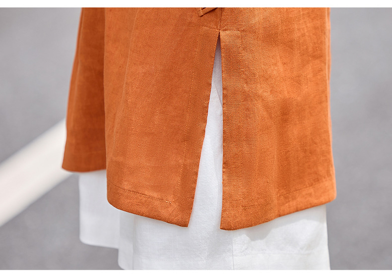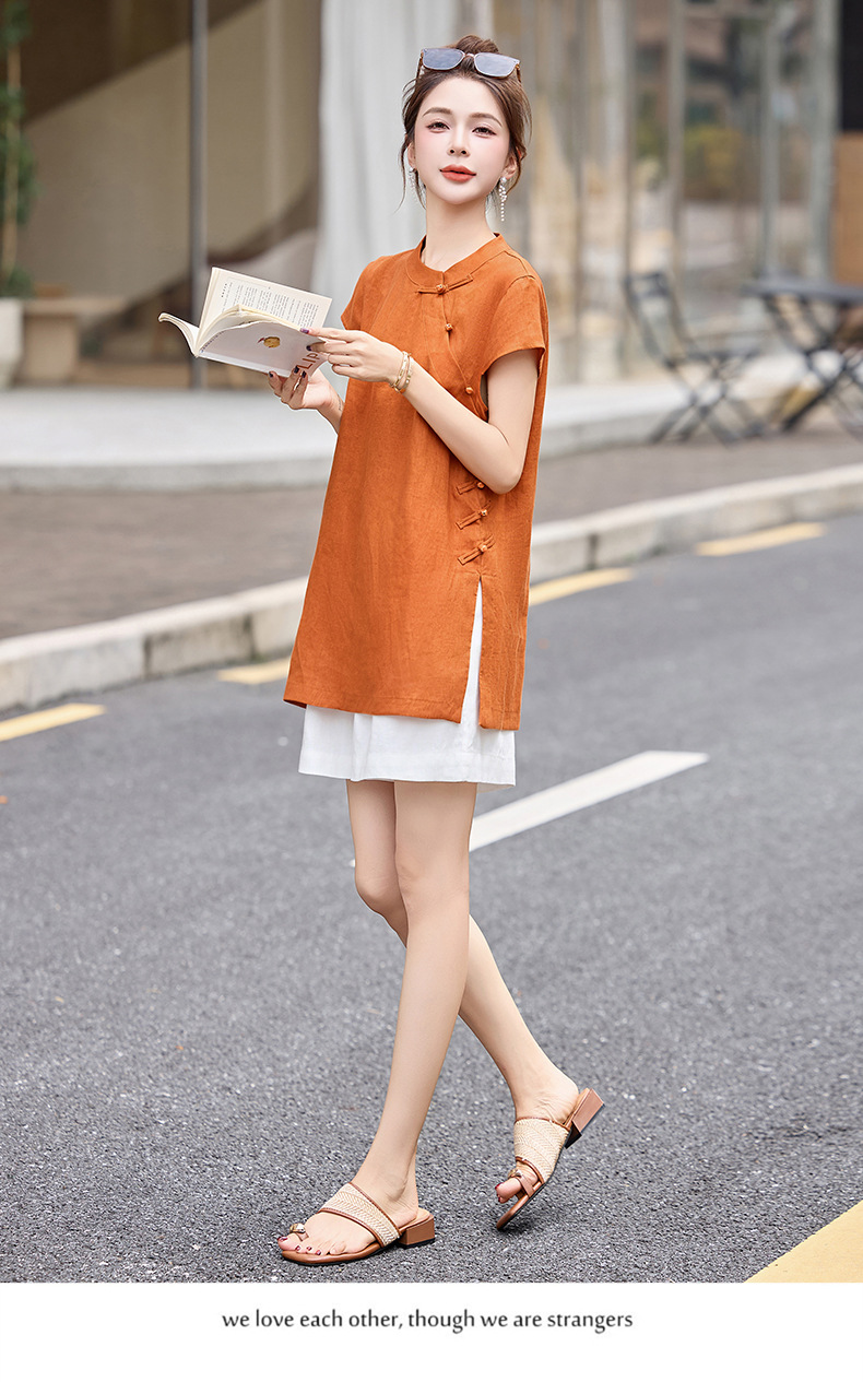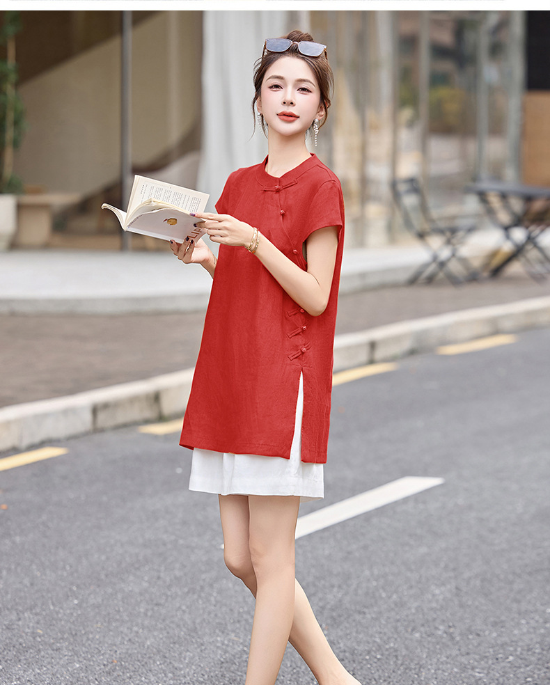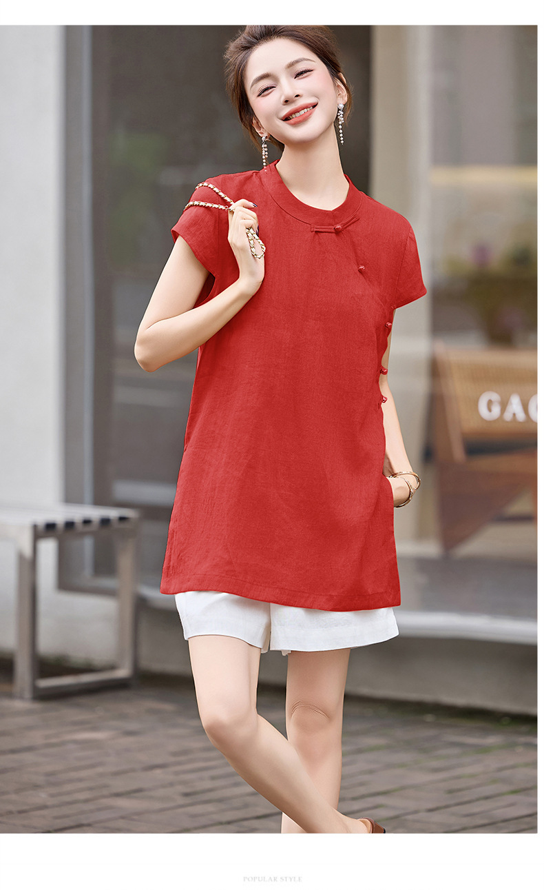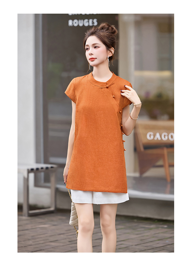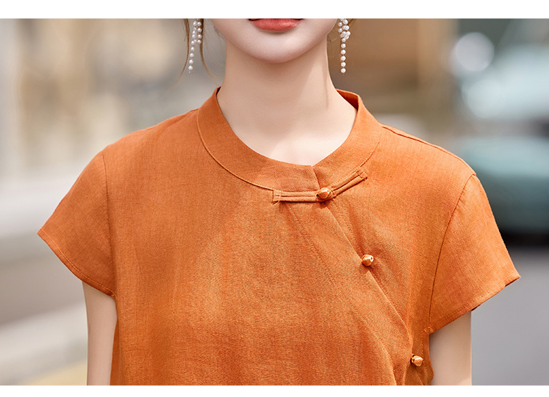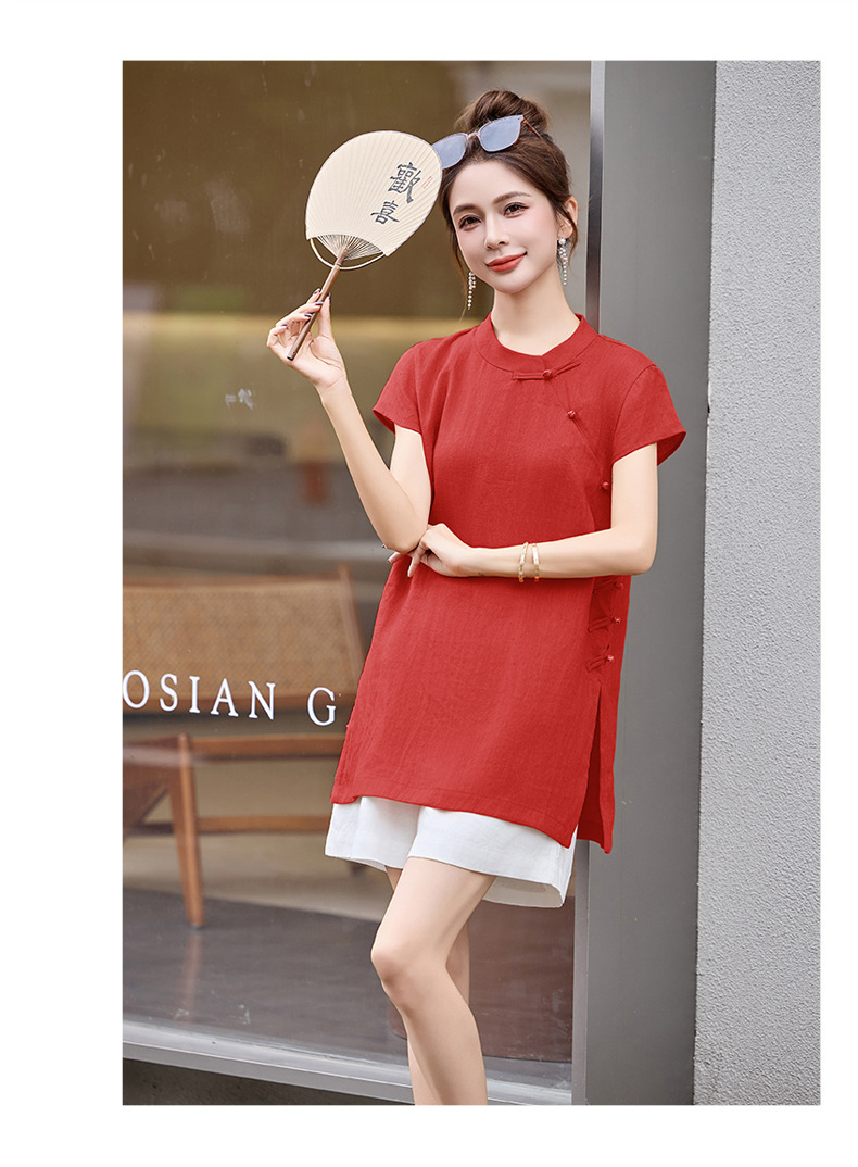 EHJY5089新中式棉麻套装女2025夏新款时尚复古洋气盘扣斜襟上衣短裤两件套