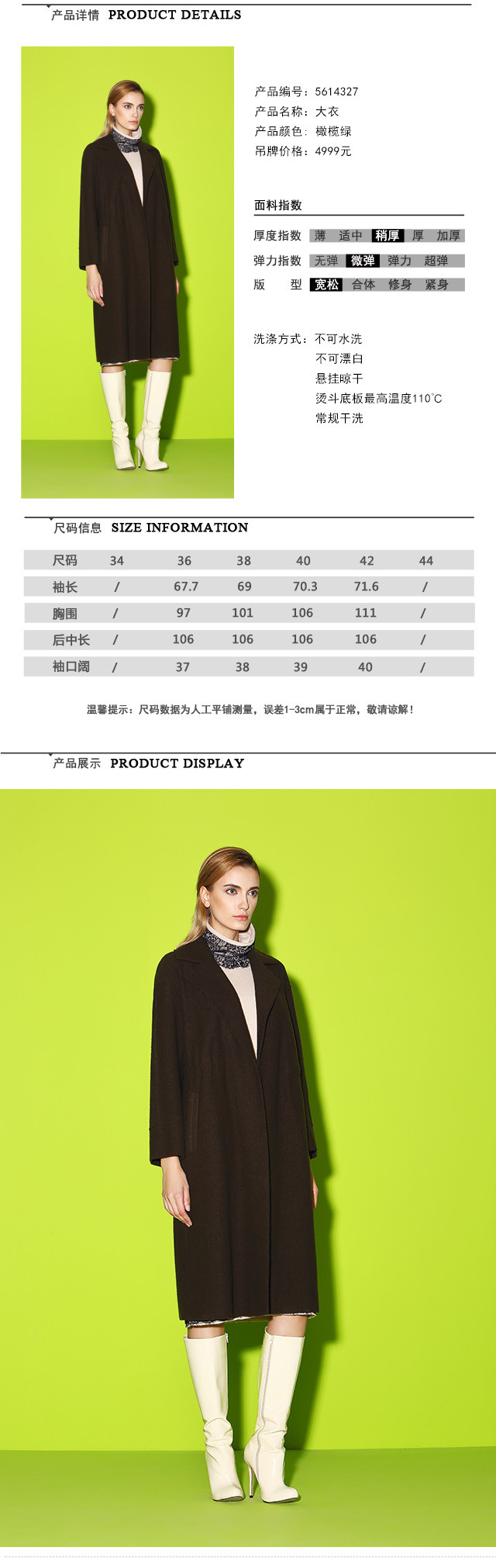 EITIE爱特爱女装冬季修身长款西装领毛呢大衣羊毛外套5614327