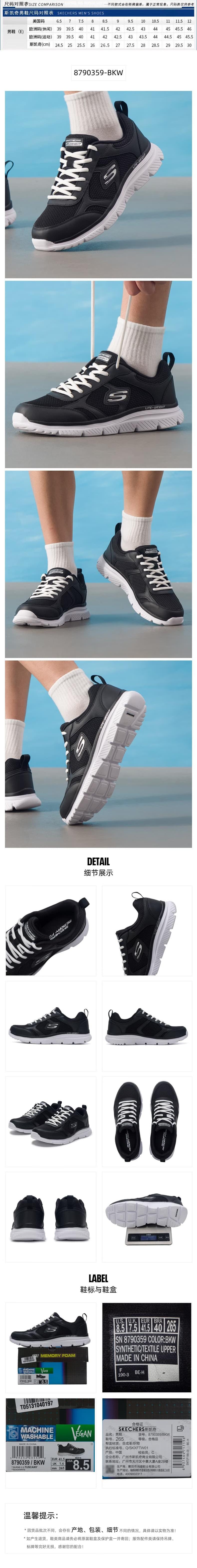 Skechers斯凯奇 男跑步鞋 8790359-BKW