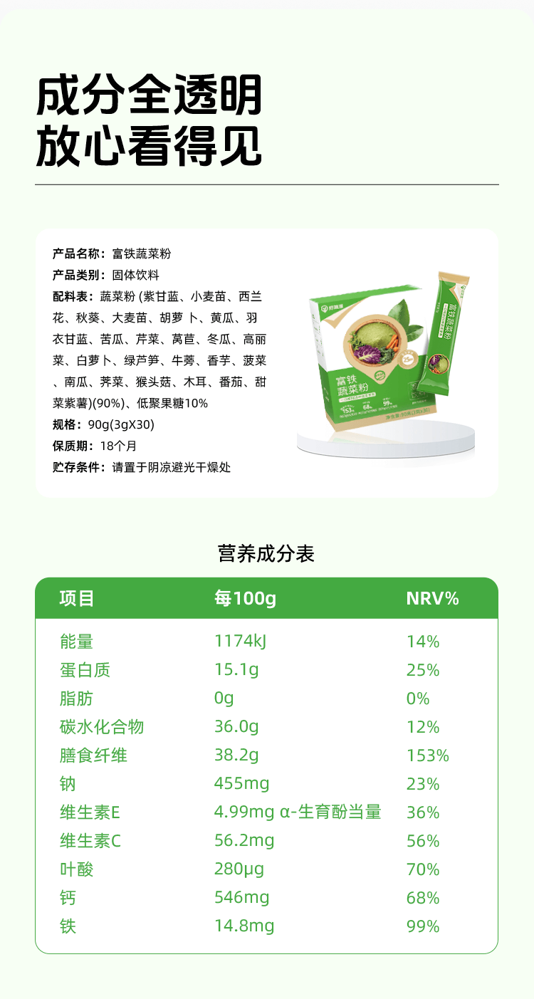 【供货】好蔬源 富铁蔬菜粉 3g*30袋/盒 一口吃到25种蔬菜营养