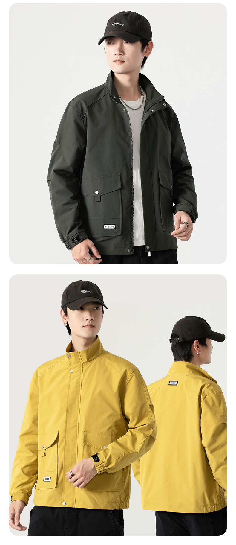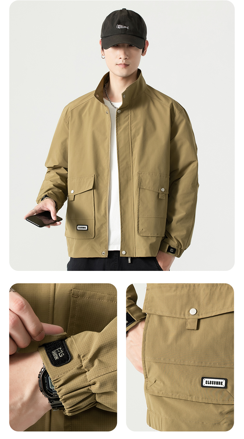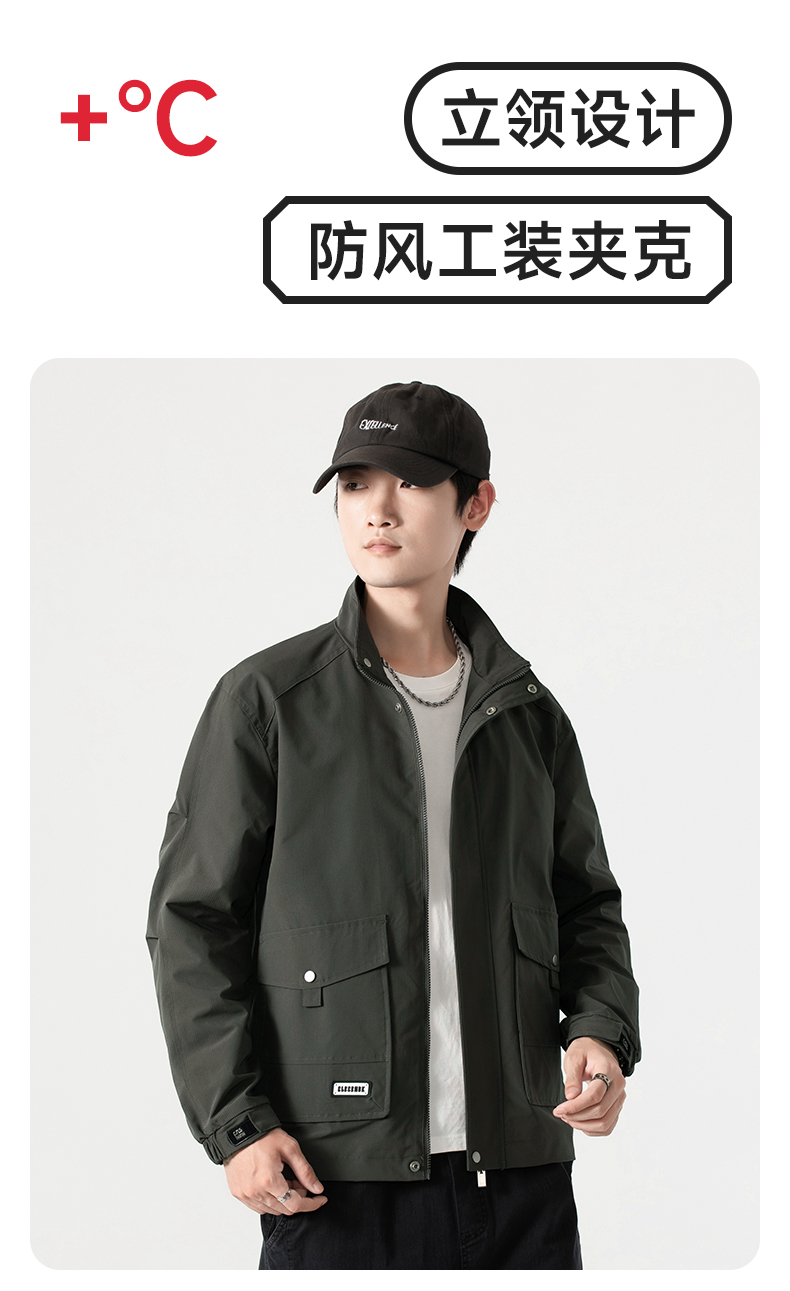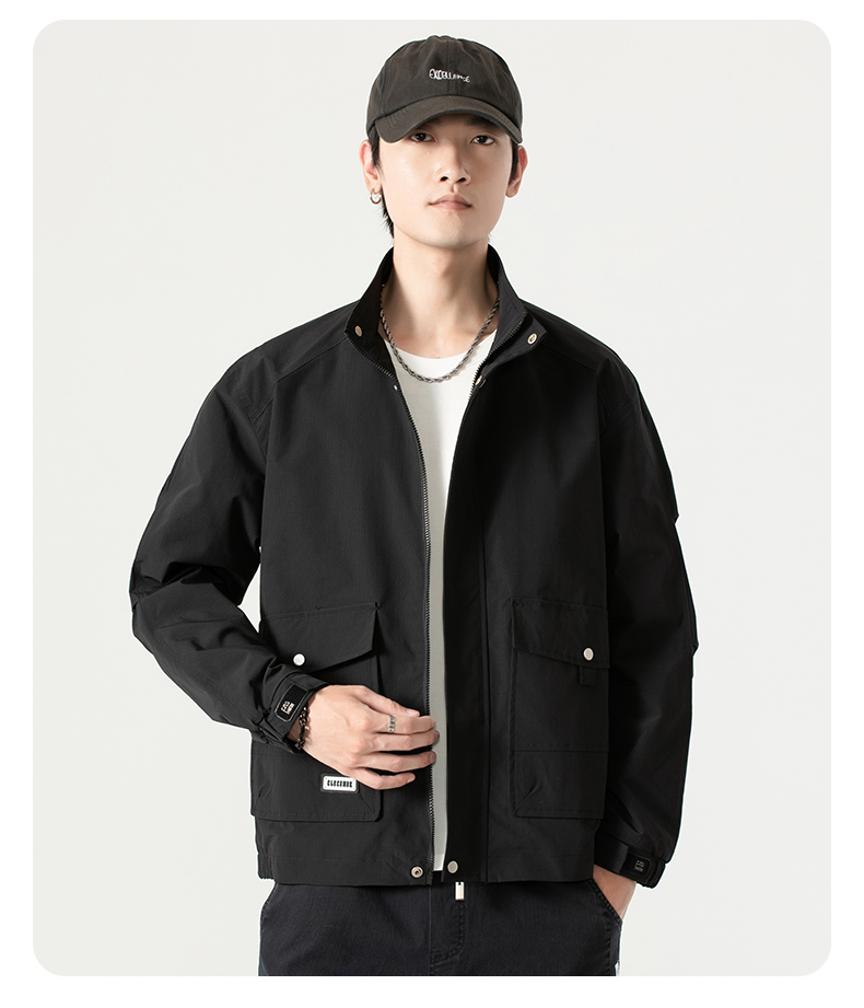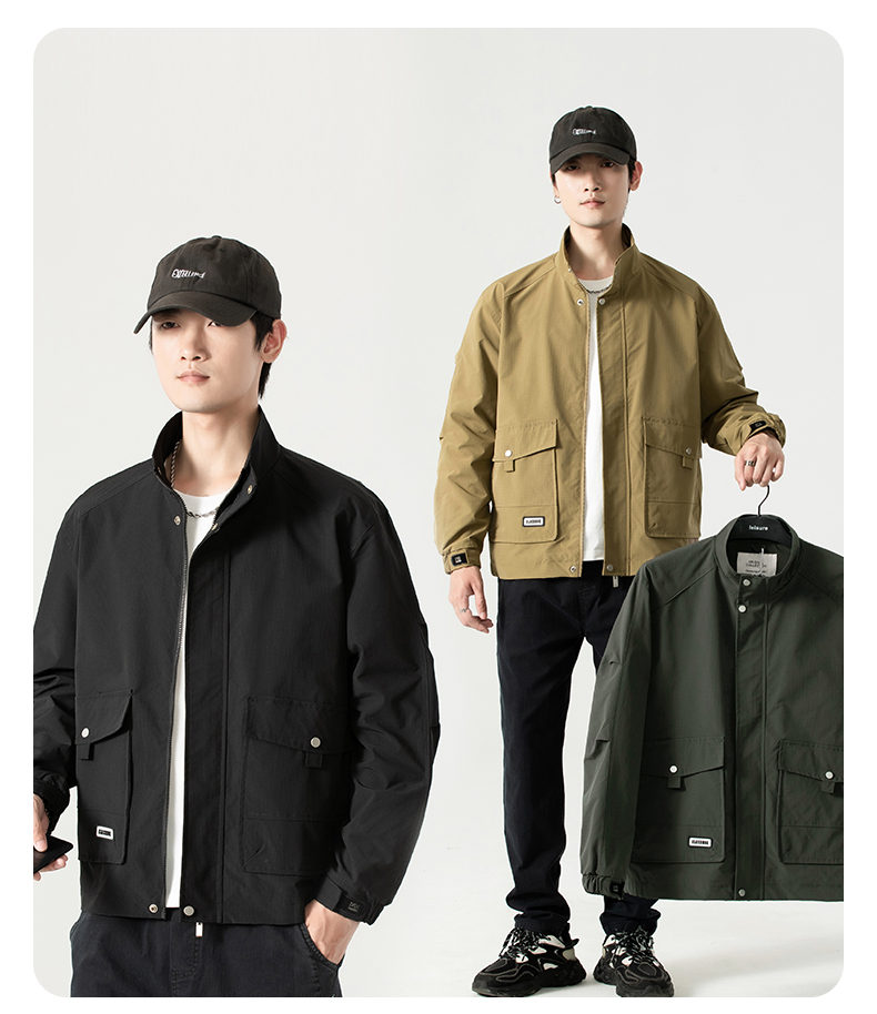 【圈】【新款DK】大依优型大码男装立领夹克加肥加大休闲夹克胖子宽松弹力运动外套上衣