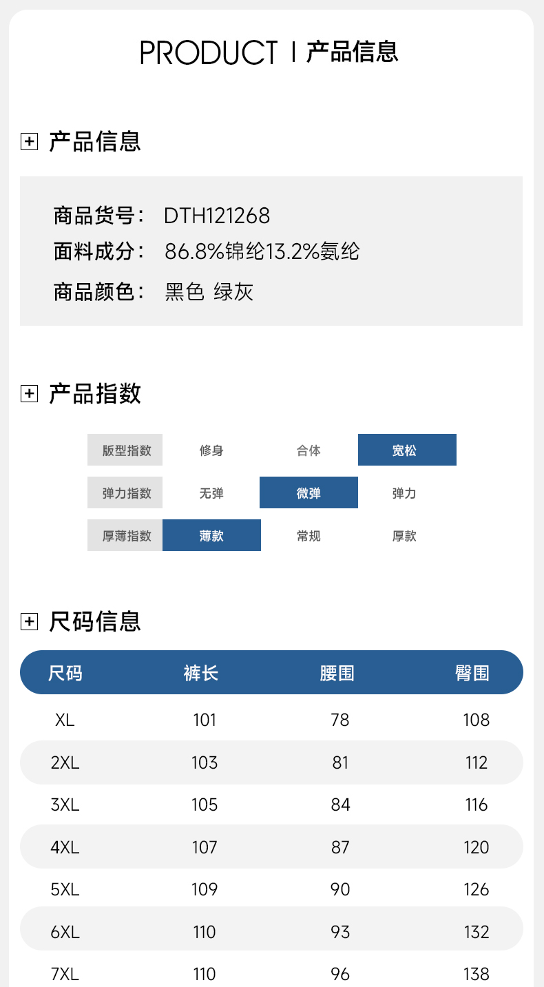 Q【新款DTH】大依优型大码半松紧腰休闲长裤夏季冰丝直筒弹力休闲裤运动裤透气舒适显瘦薄款