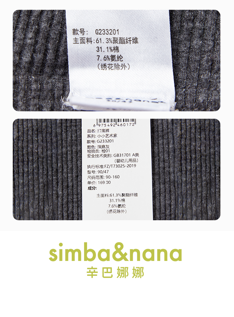 【辛巴娜娜】simbanana女童装裤子新款打底裤针织舒适休闲裤