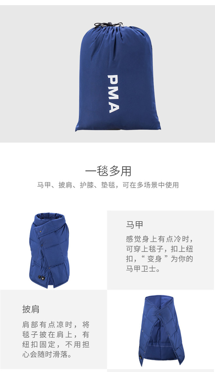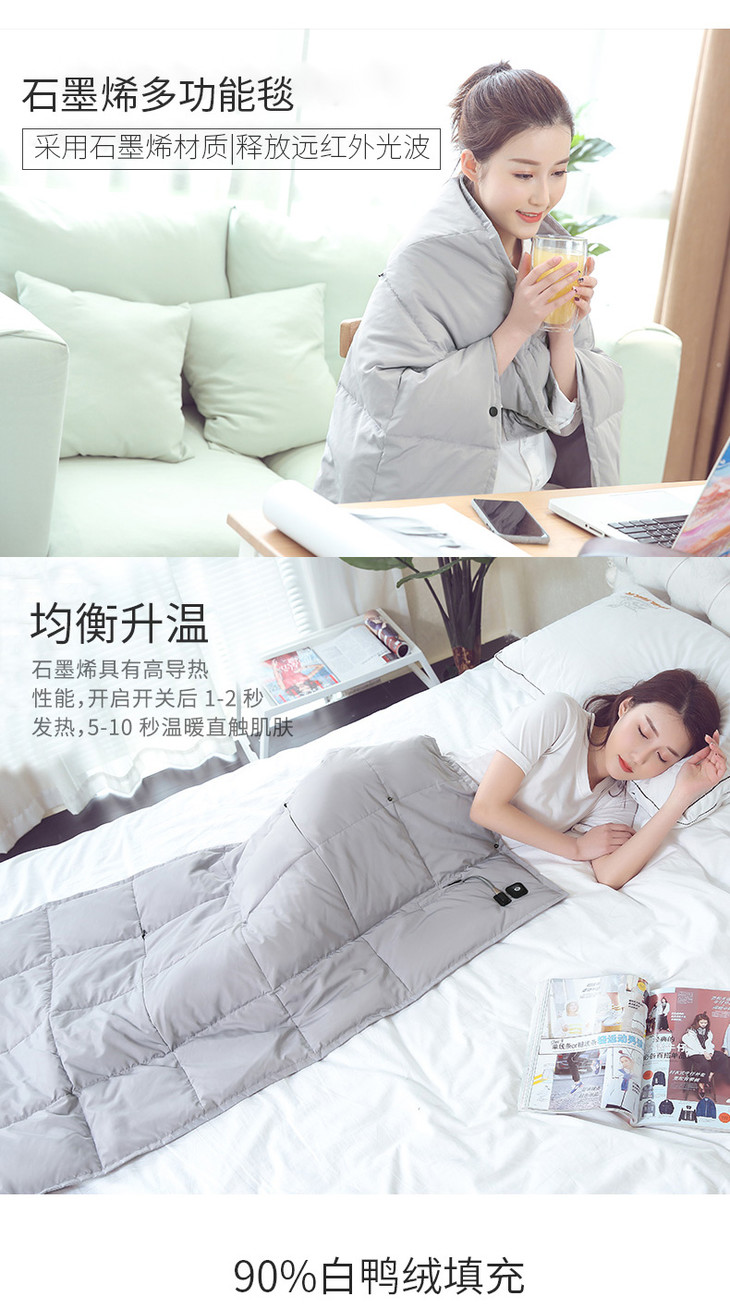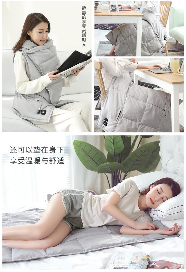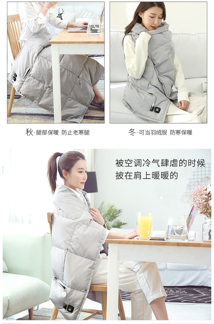 温馨提醒:此产品需配套移动电源或者连接电源使用。 5000毫安以上,电源尺寸为10.5*17.5cm以内的移动电源均可使用(毯子电池袋口10.5*深度17.5cm)。