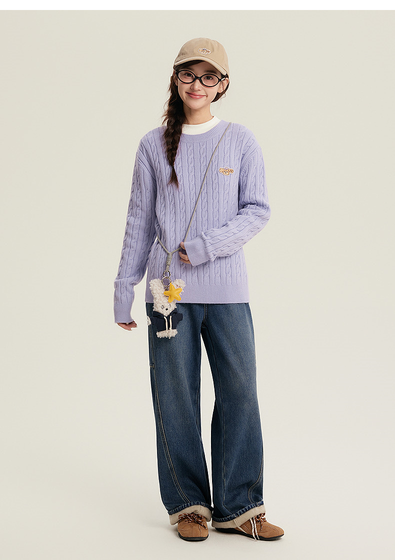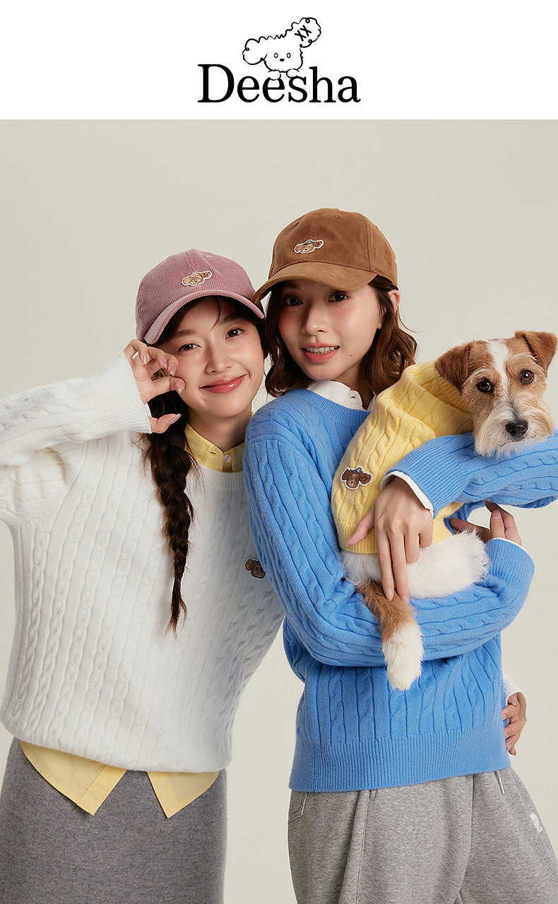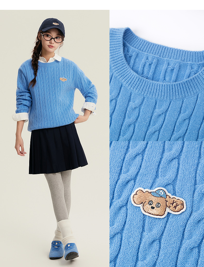 笛莎Deesha青少年女童毛衣2025冬季女童多彩刺绣小狗标毛衣