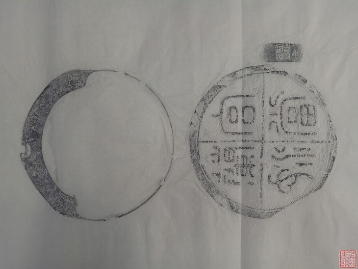 该瓦当极为稀少,值得收藏。北京 汉典艺术馆精品,周同祥先生藏品,甘兰手拓片。乌金效果。四尺四开,留有题跋空间。