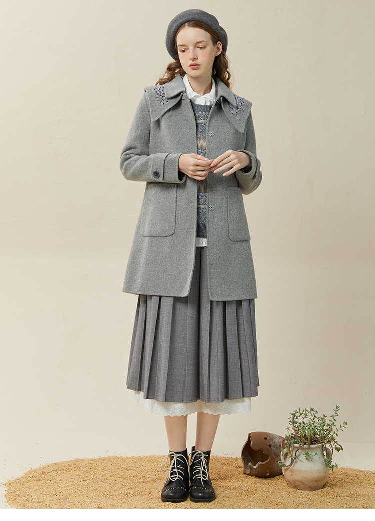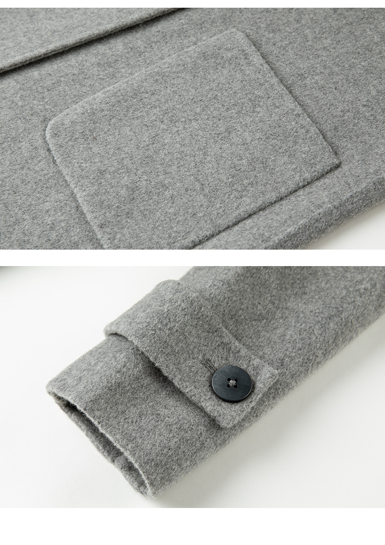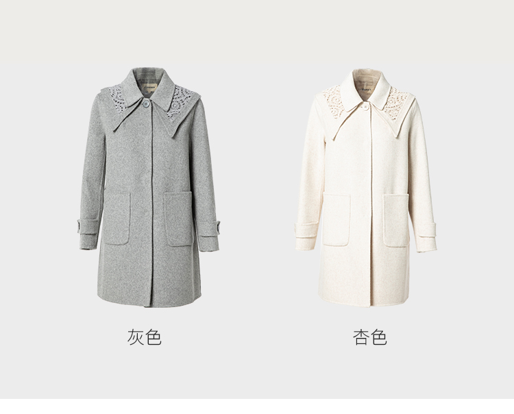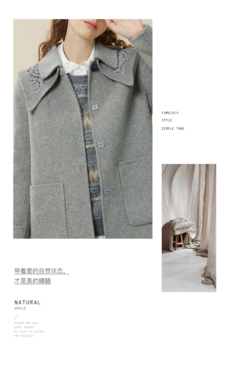 Famecoco范可儿牛角扣毛呢大衣外套女秋冬款长袖方领外套女F228AR002