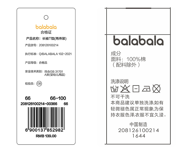 【balaOne】巴拉巴拉童装宝宝长袖T恤打底衫婴儿上衣两件装清新萌