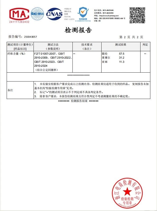 【材质】面料:57.5%腈纶 31.2%莱赛尔 11.3%亚麻