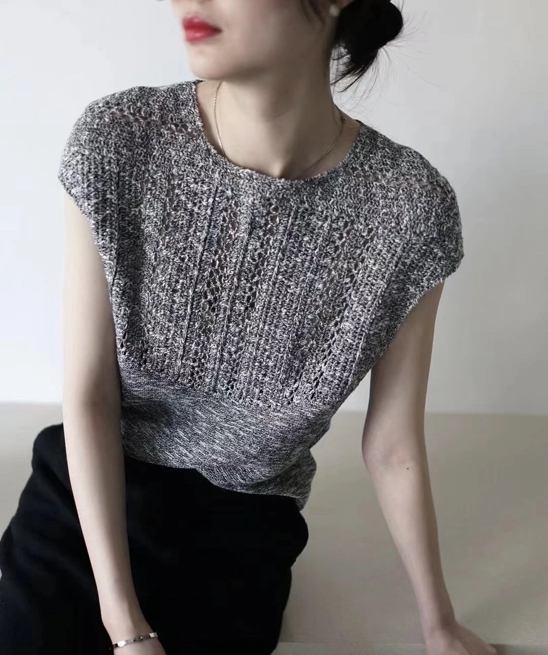 自带冷感滤镜的珍稀纱线❗️ 北欧奢选⚠️温柔而坚韧的针织之美,雾感黑灰手钩针织衫,独特的镂空花样,似夜空中闪烁的星芒,透着隐隐绰绰的性感