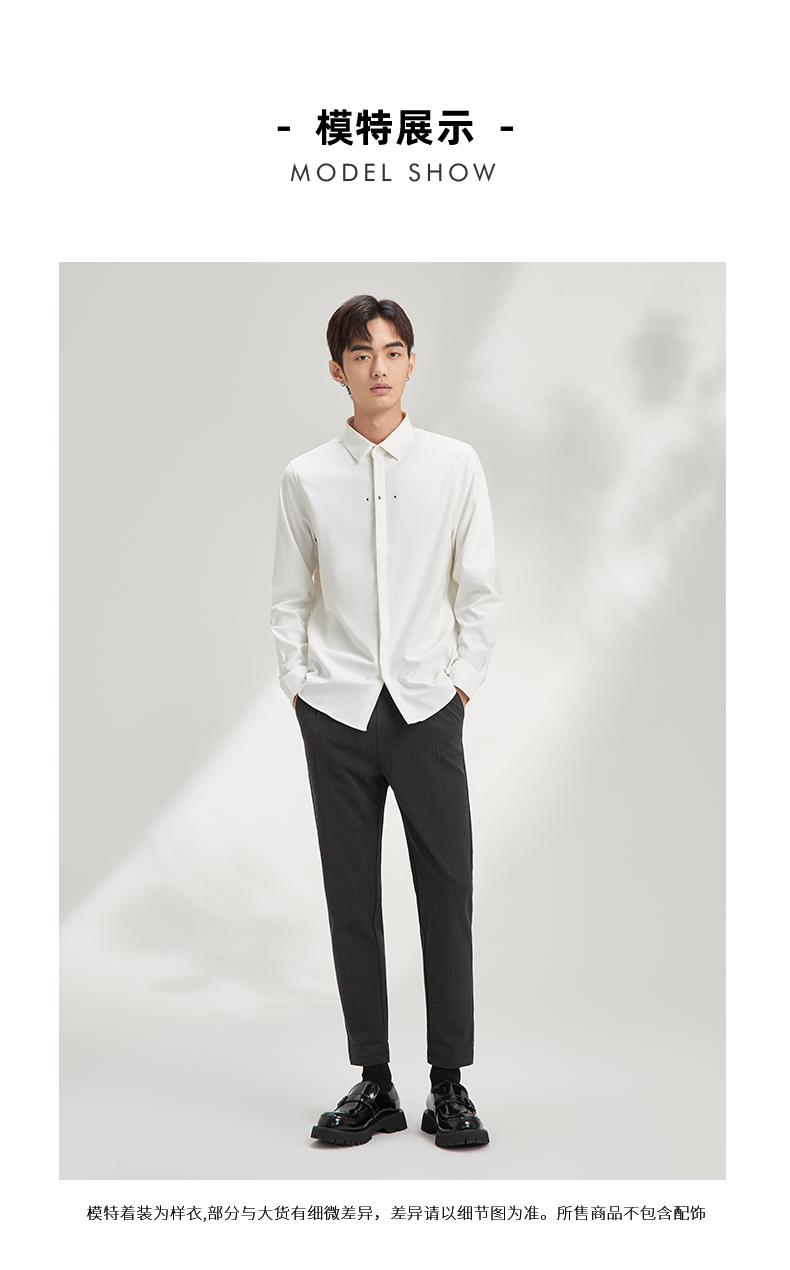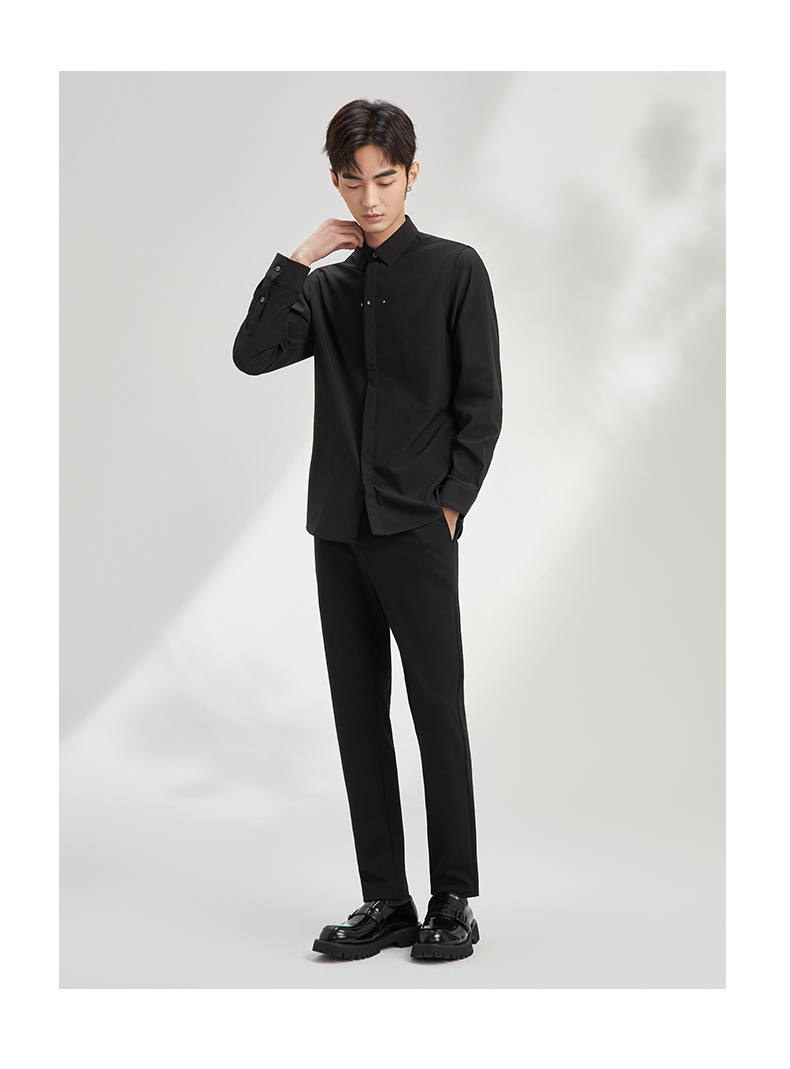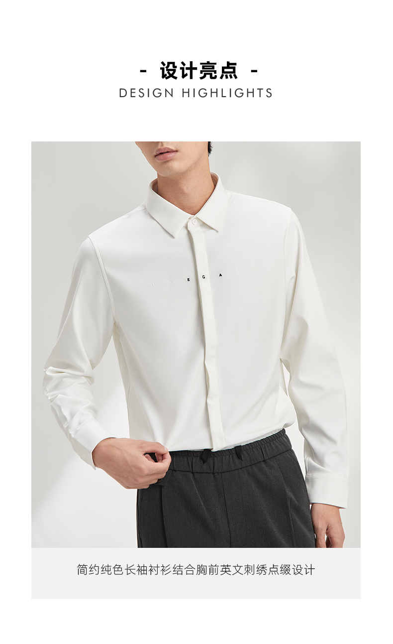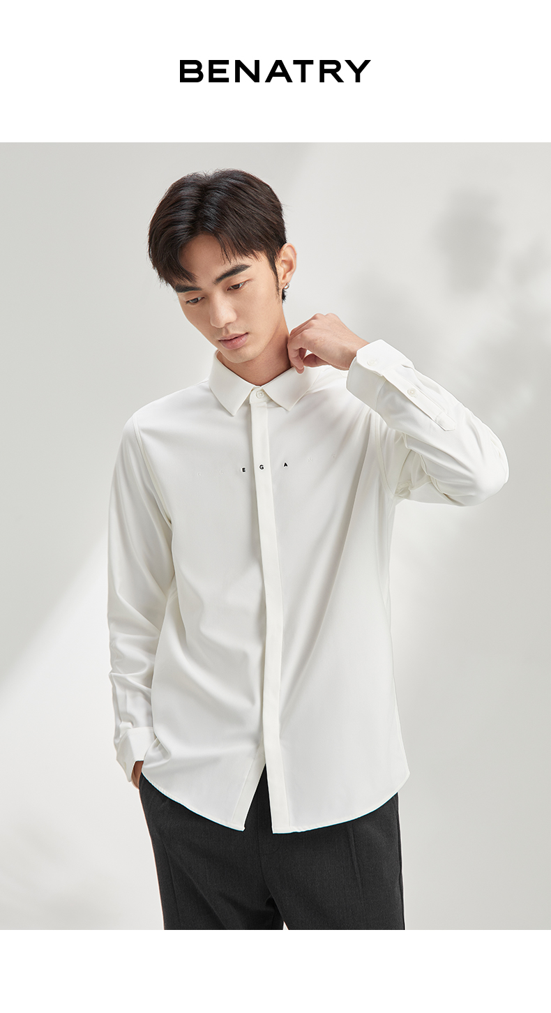 贝纳川长袖衬衫极简男装流行帅气免烫舒适抗皱韩版简约百搭上衣 120411004