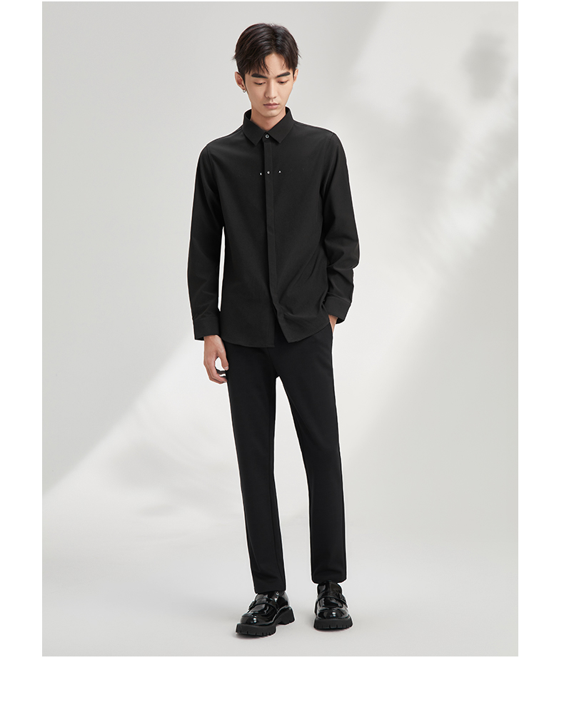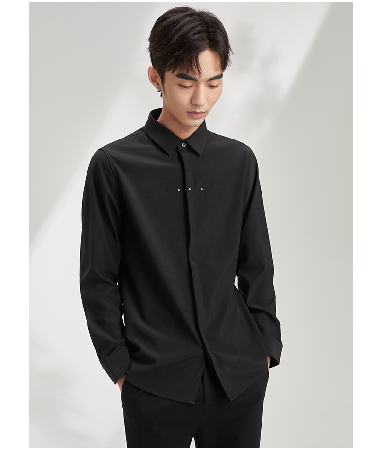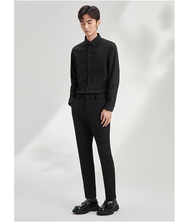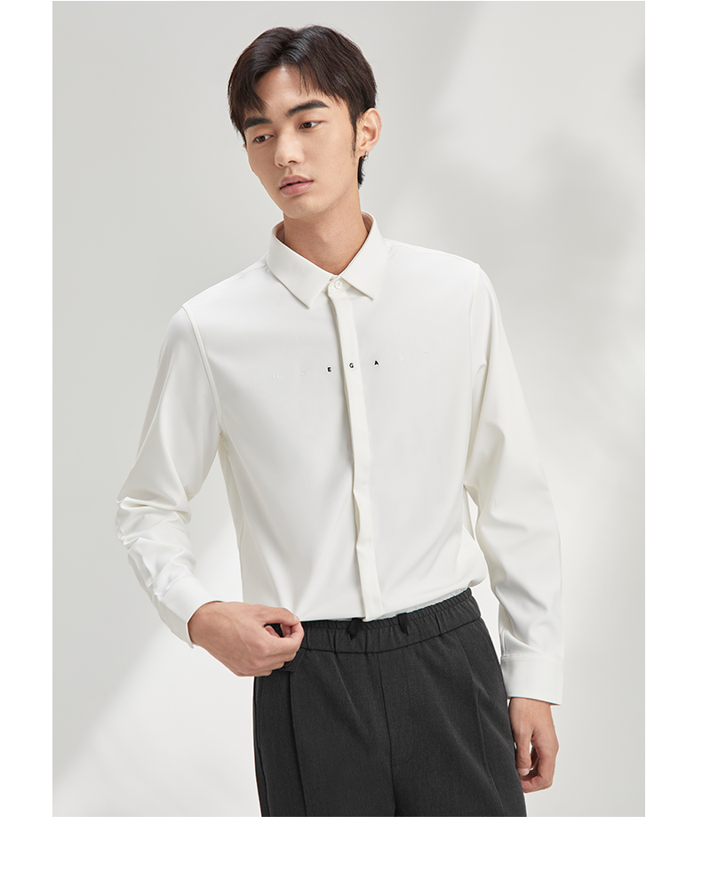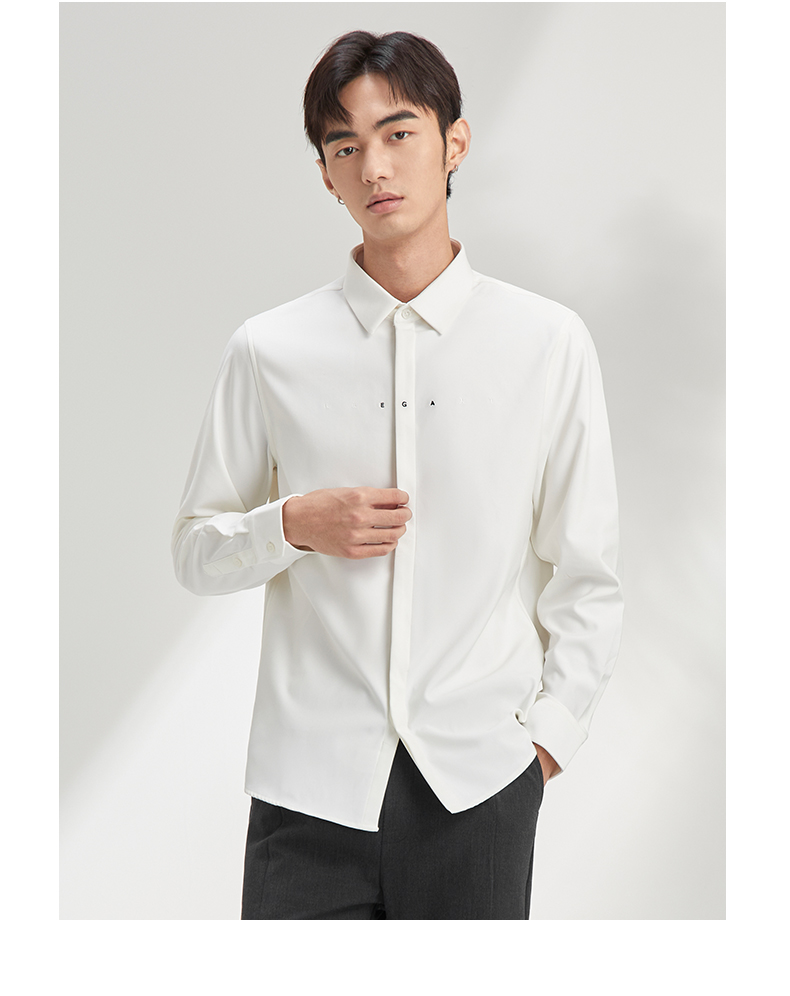 贝纳川长袖衬衫极简男装流行帅气免烫舒适抗皱韩版简约百搭上衣 120411004
