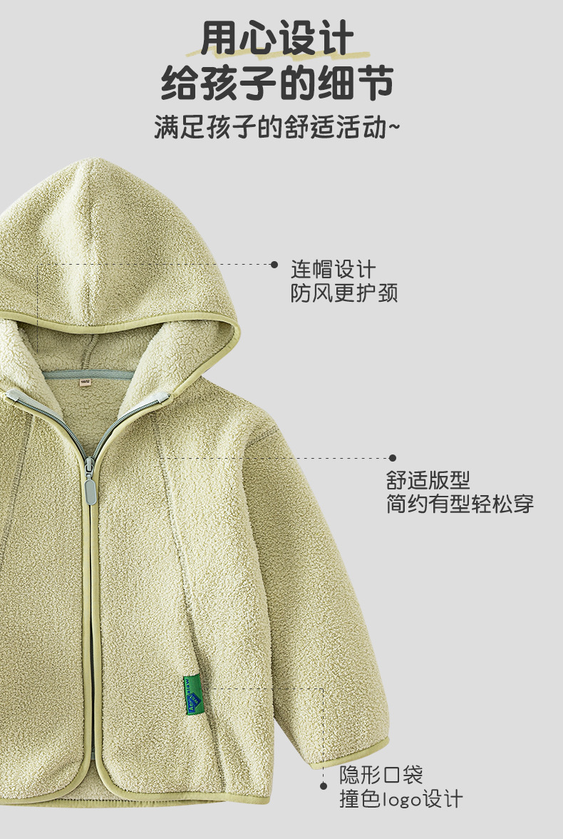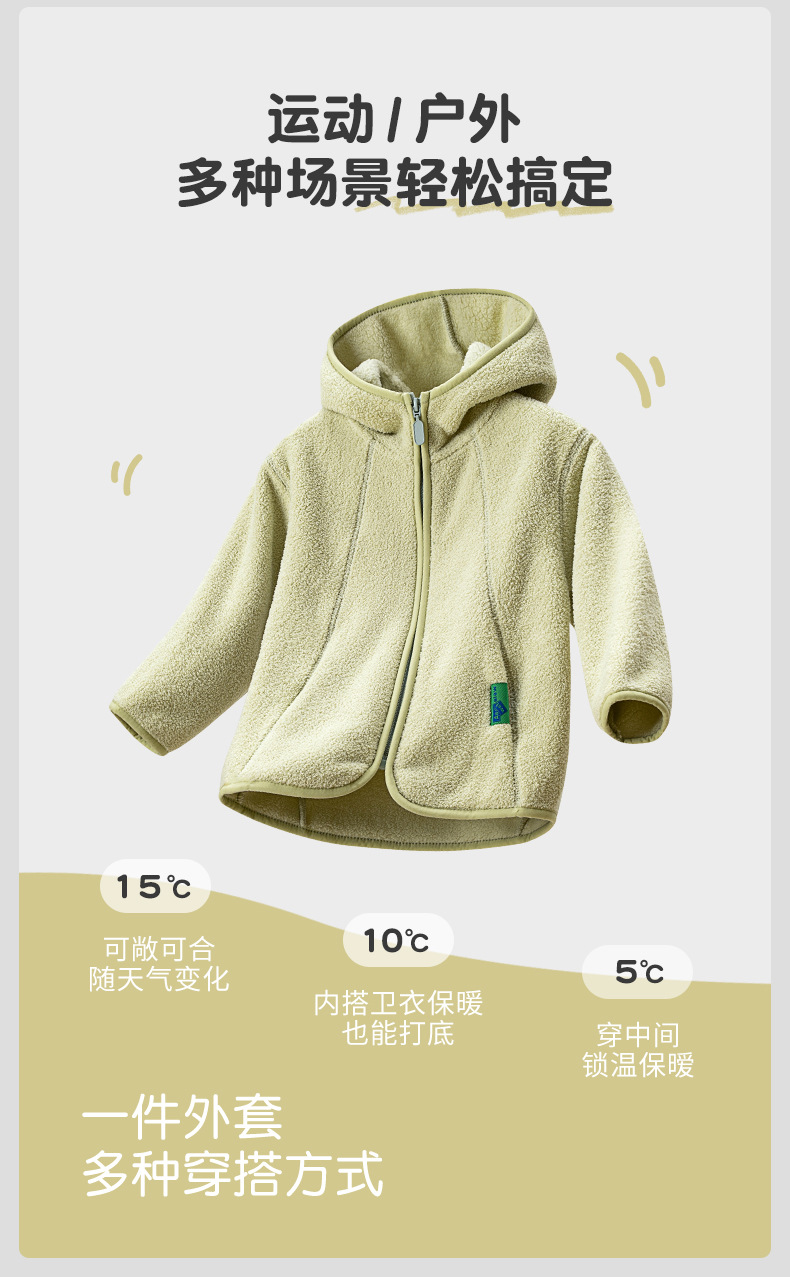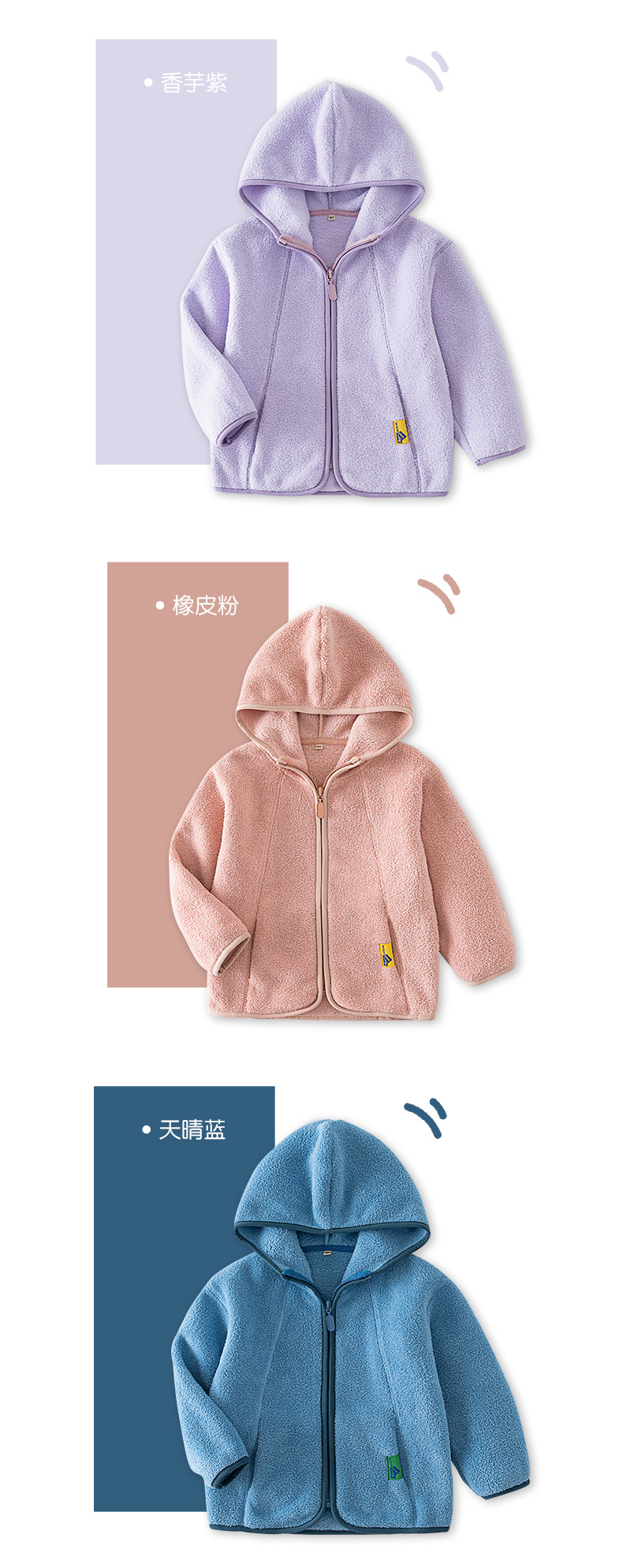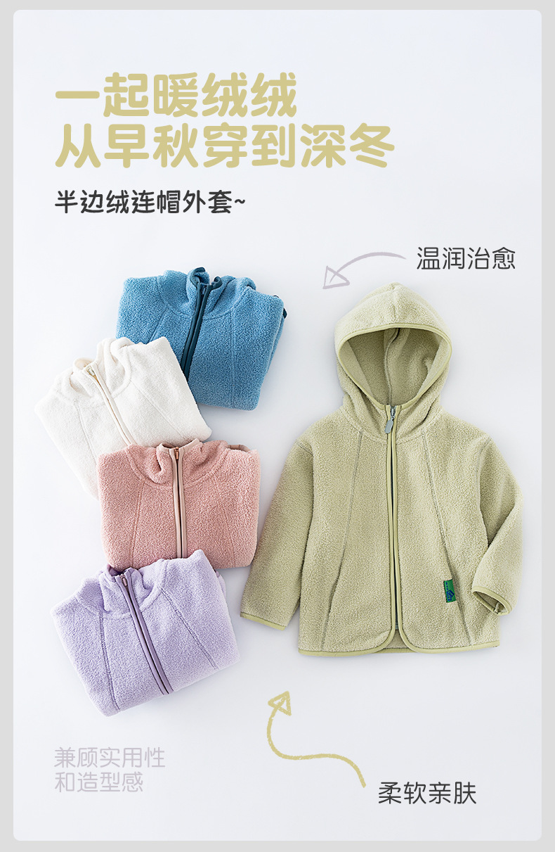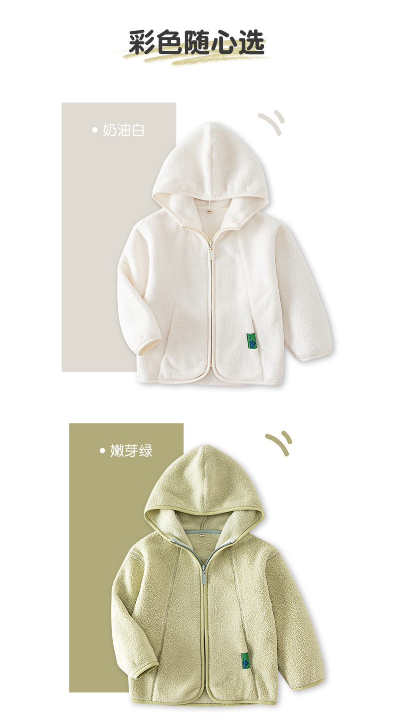 【拍2减立减20元】【软糯小绵羊半边绒】儿童连帽外套户 外经典款纯色抓绒保暖外套、保暖裤
