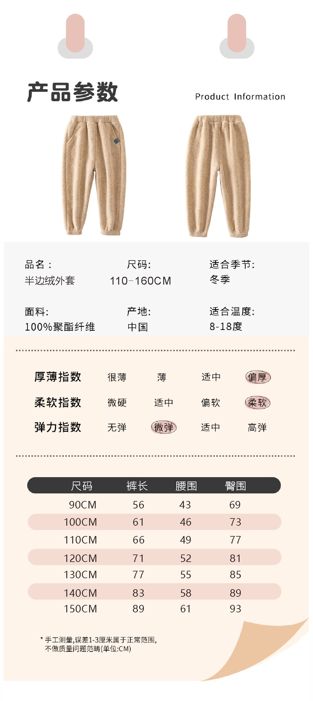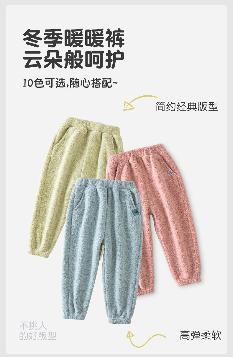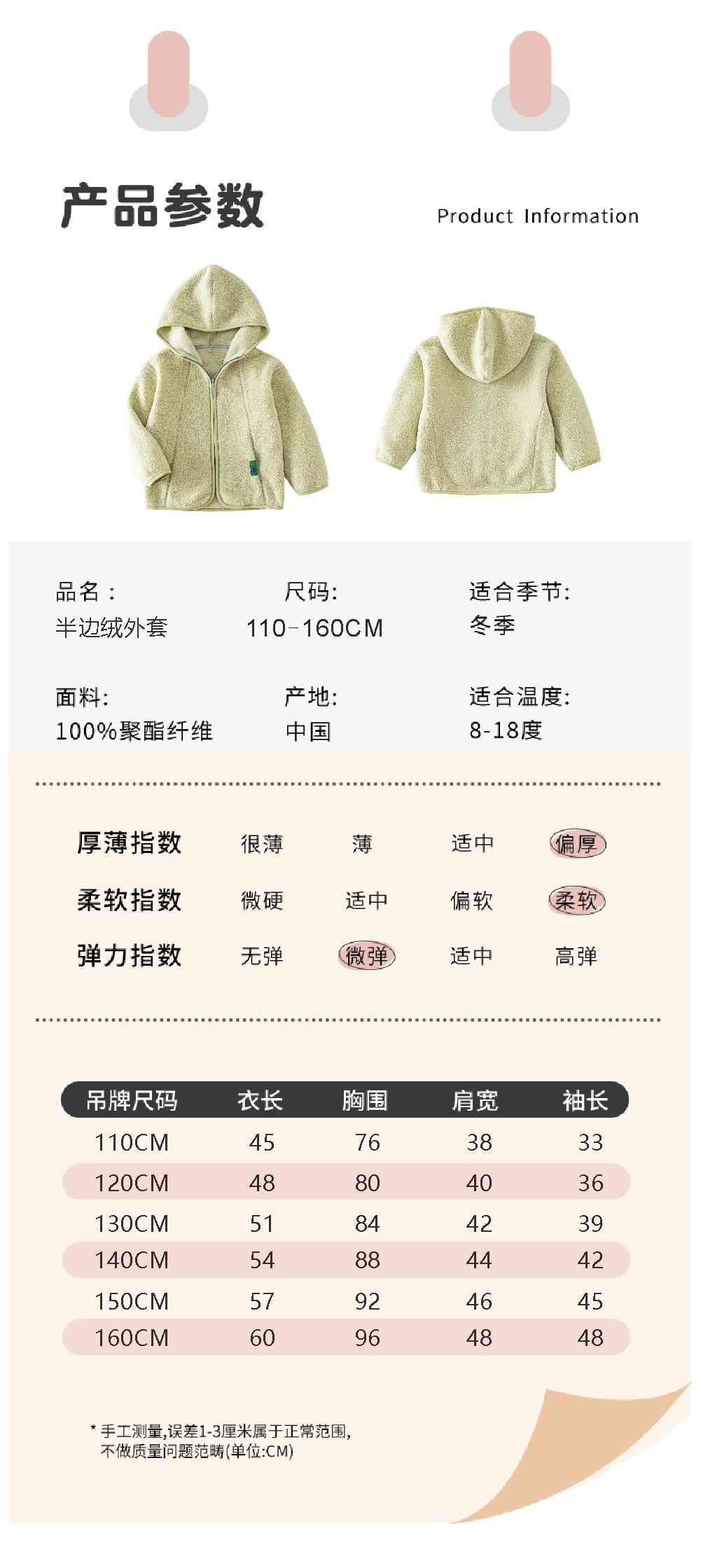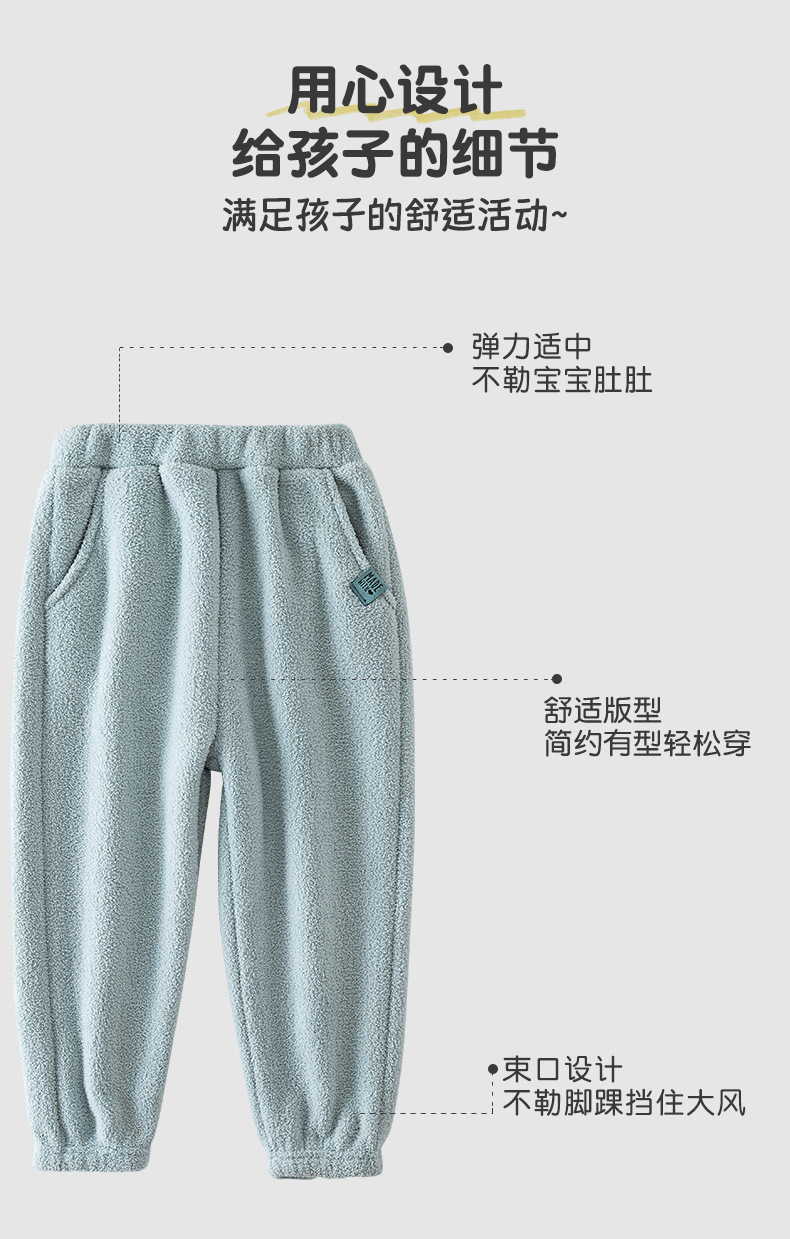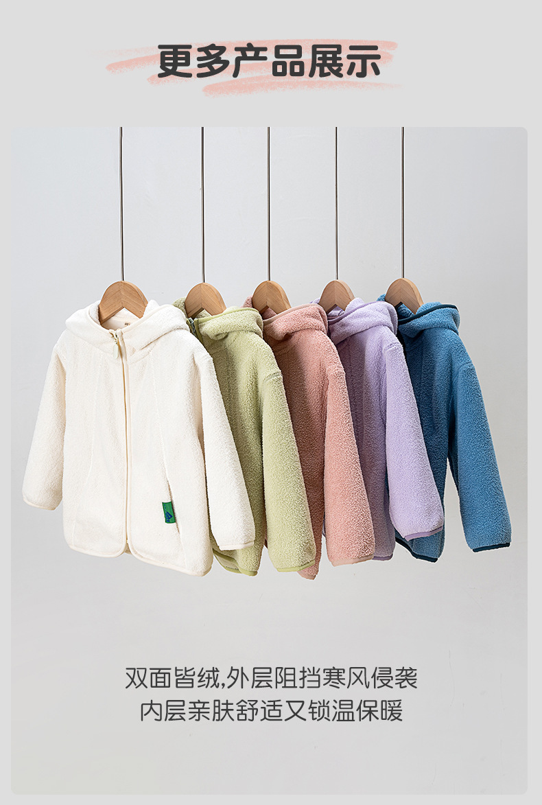 【拍2减立减20元】【软糯小绵羊半边绒】儿童连帽外套户 外经典款纯色抓绒保暖外套、保暖裤