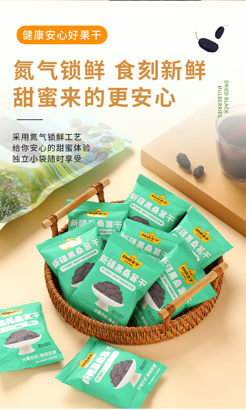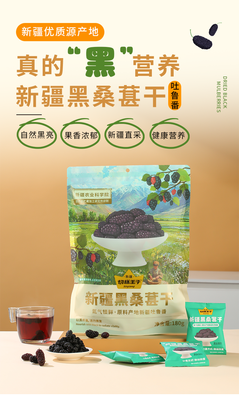 粒大饱满无沙·切糕王子新疆黑桑葚干 吐鲁番精选 自然鲜甜