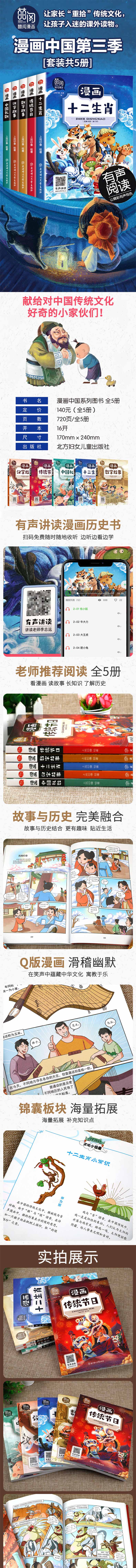 漫画中国第三季全套5册中国传统节日故事 十二生肖的故事汉字的故事漫画书小学生二三四五年级课外书必读正版儿童历史漫画科普书籍