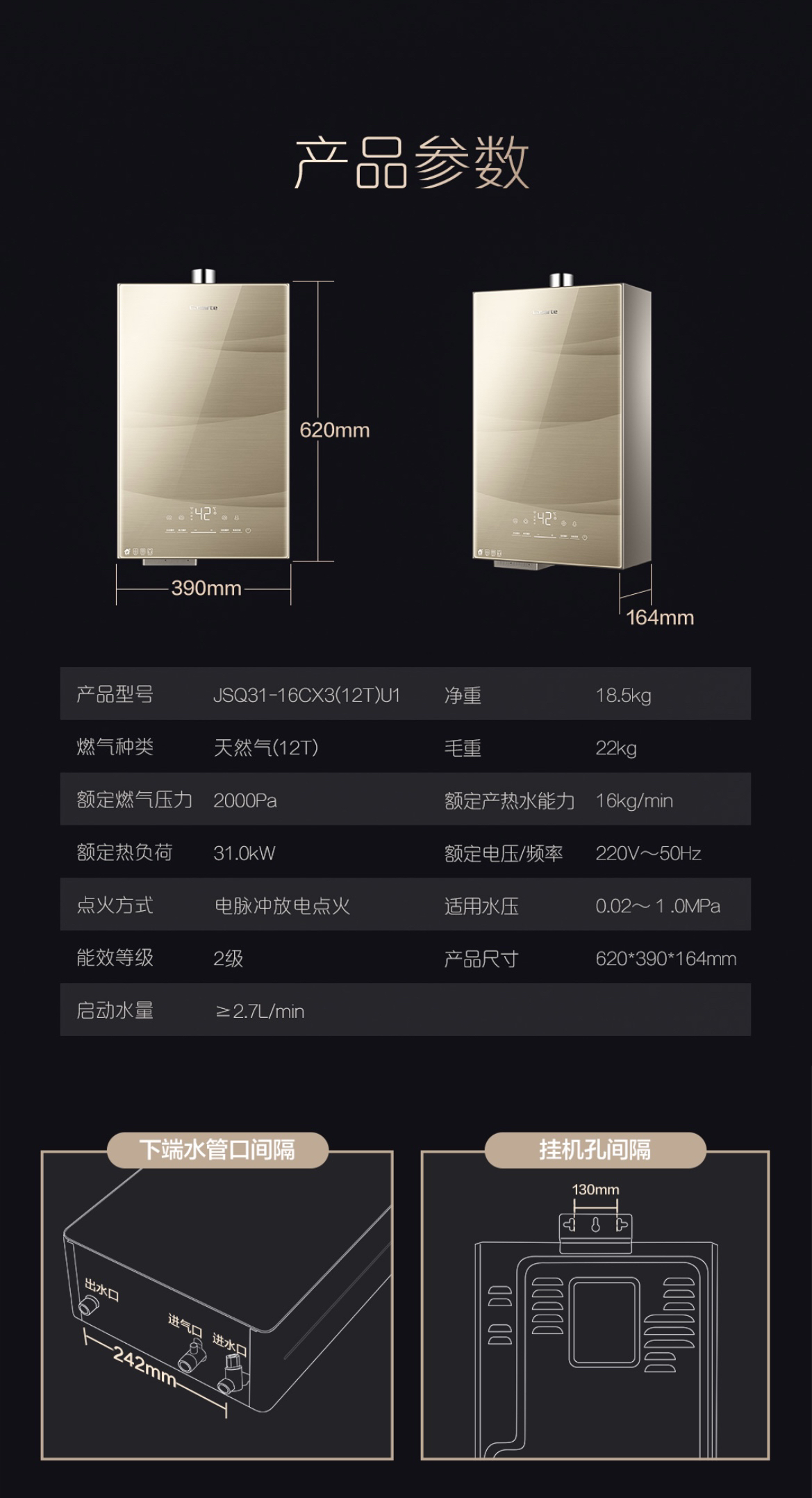 卡萨帝(Casarte)热水器 JSQ31-16CX3(12T)U1