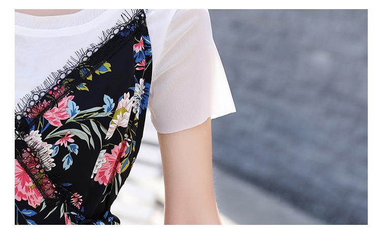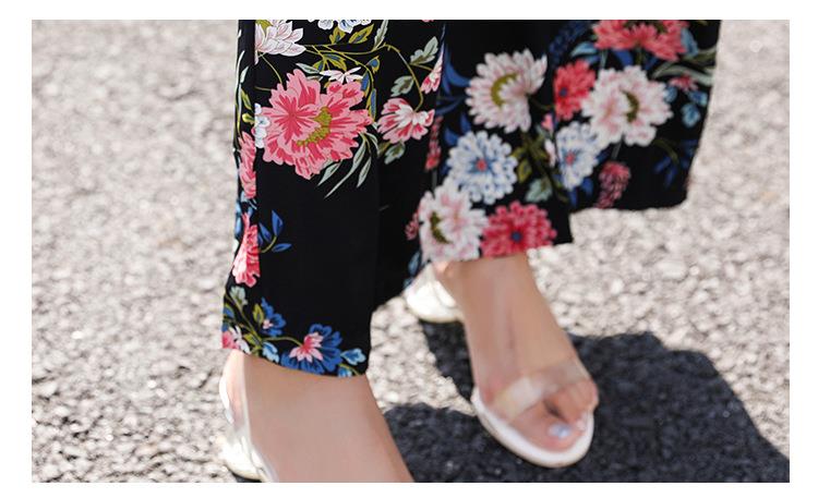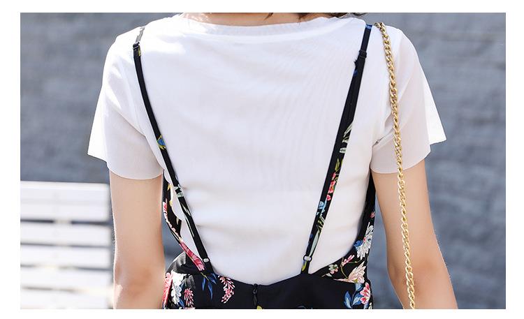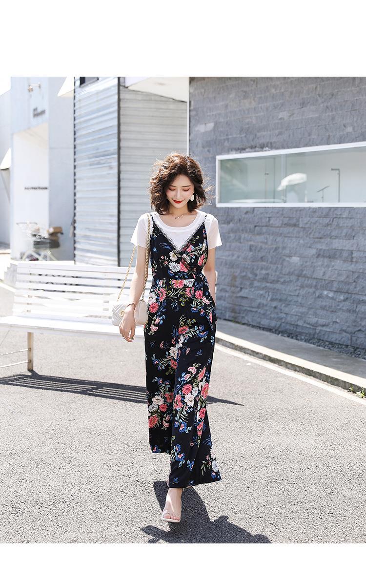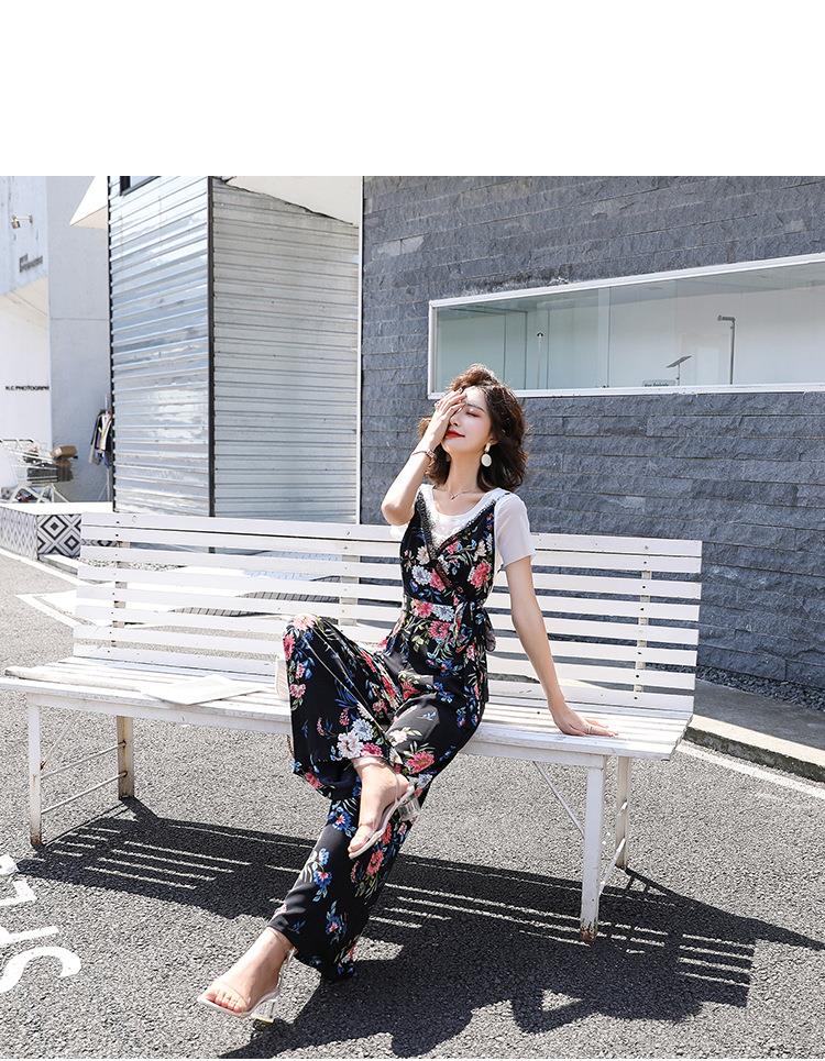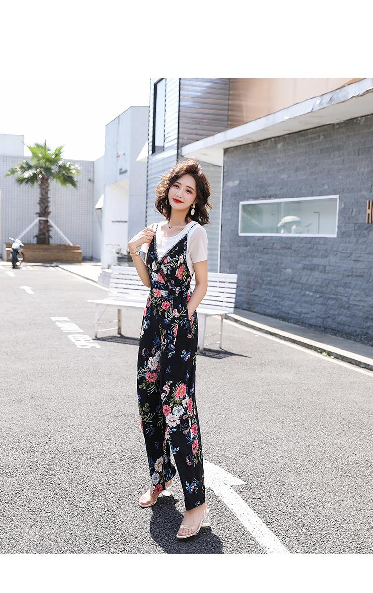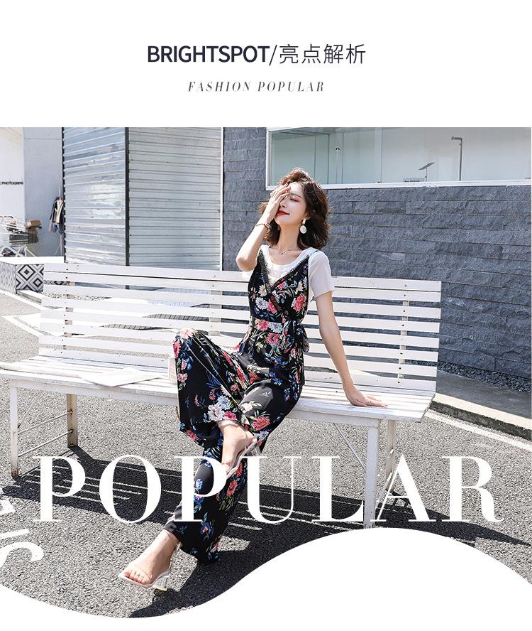两件套背带阔腿裤欧洲站女装2023夏季T恤碎花连体裤连身裤套装女