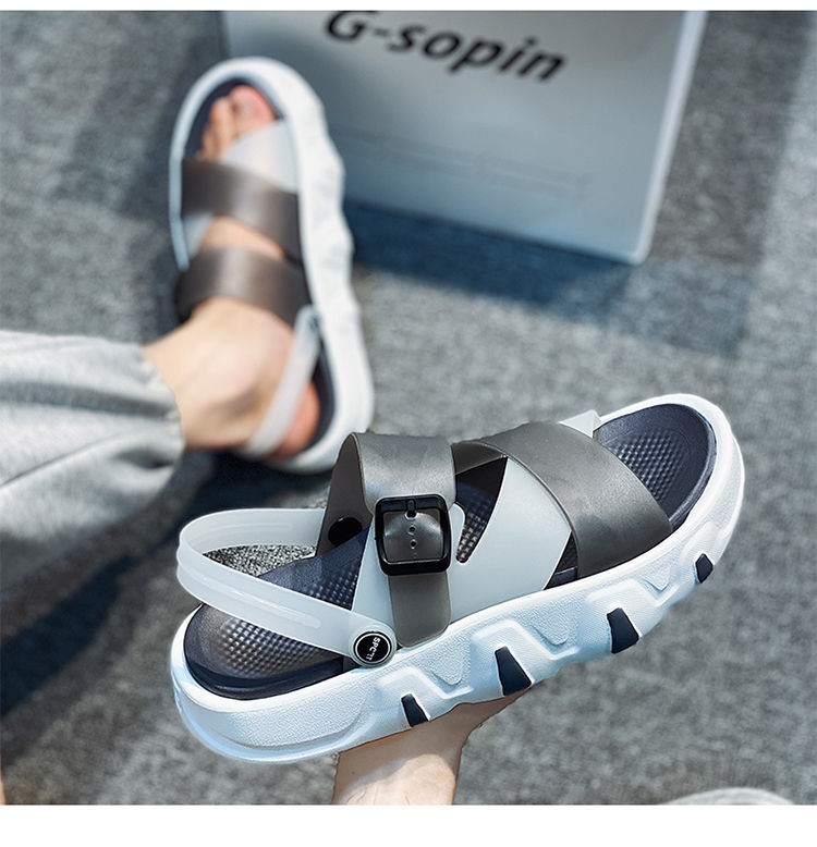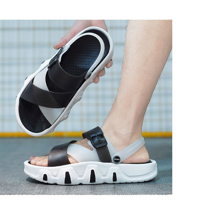 沙滩鞋男士2023新款夏季外穿潮流百搭运动休闲两穿踩屎感皮凉拖鞋sjmh16