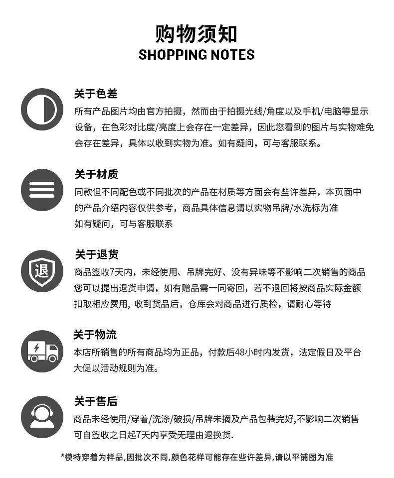 2.深色衣服属于敏感色系,首次下水如有轻微浮色、浮毛、掉色都是属于正常现象,不建议长时间浸泡,建议用冷水+盐进行固色洗涤。