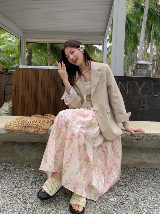 A字大裙摆设计 用料方面真没小气和偷工减料之说 这条裙子给人的第一感觉就是优雅又温柔 自带春夏氛围感!!!