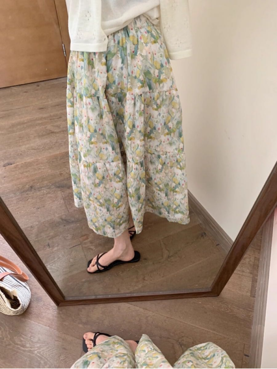 小碎花 宽松𝐀字裙摆设计用料足 对腿粗/胯宽的姐妹𝐡𝐢𝐧友好 不挑人穿~松紧高腰的设计 轻松拉篙腰线 修饰不丸美腿型