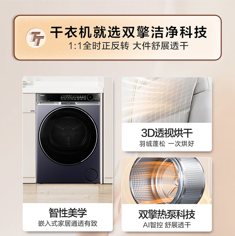 【朗境X11系列】海尔滚筒洗衣机全自动家用10公斤直驱精华洗洗烘套装纤美超薄全嵌洗衣机双擎热泵烘干衣机 X11洗烘套装