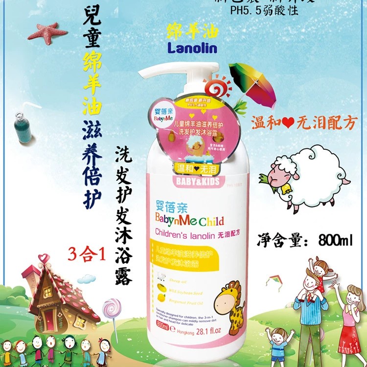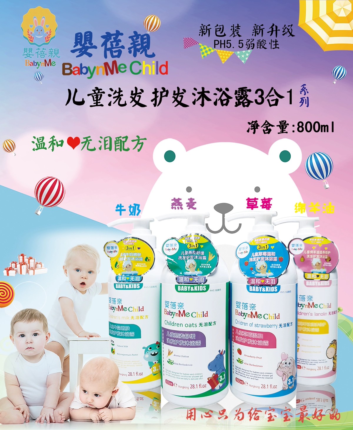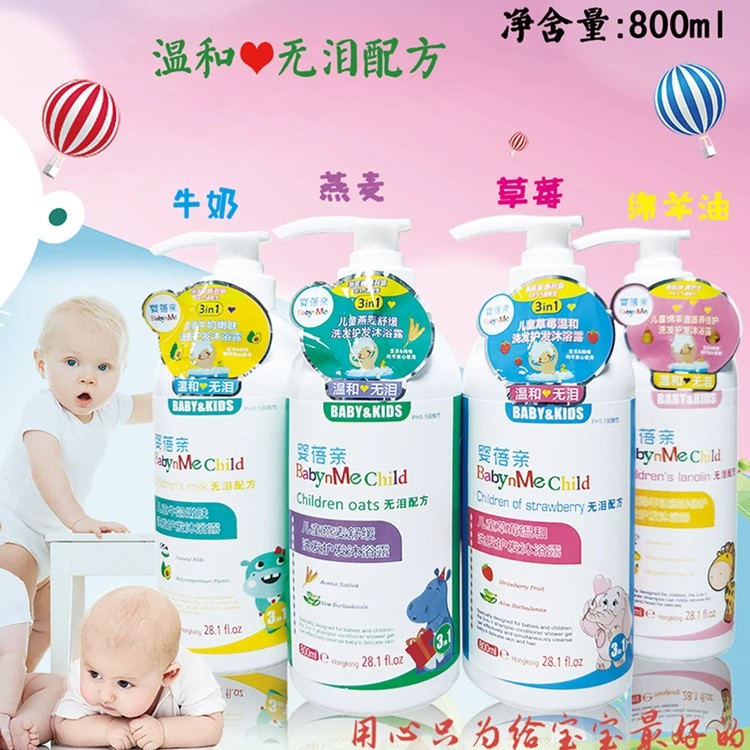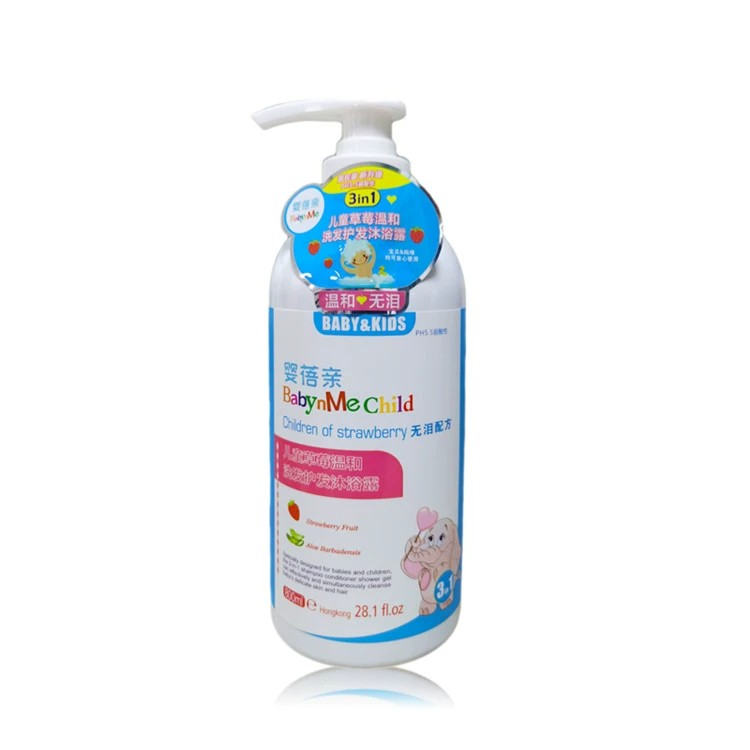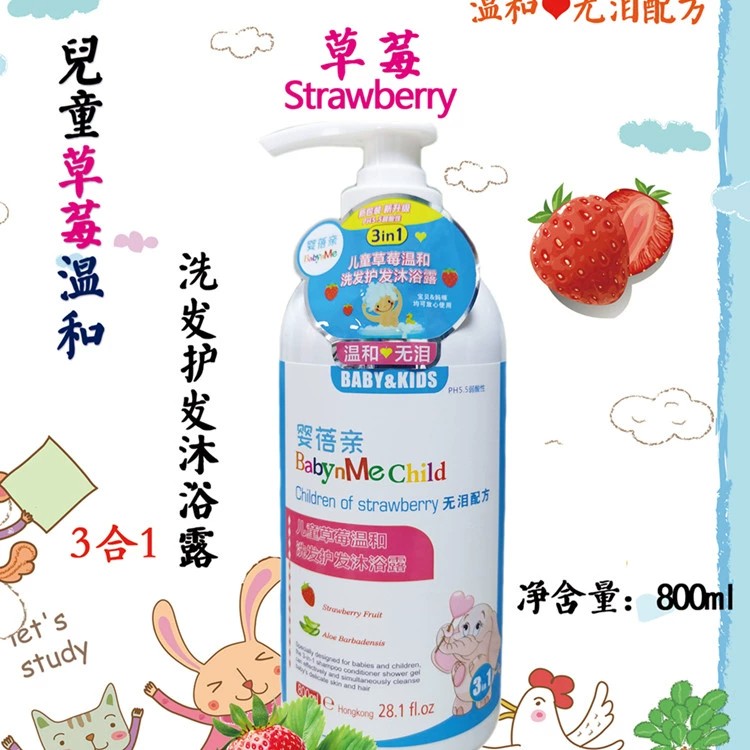 (买二送一)【中欧班列精选】婴蓓亲儿童草莓温和洗发护发沐浴露三合一无泪配方800ml/瓶