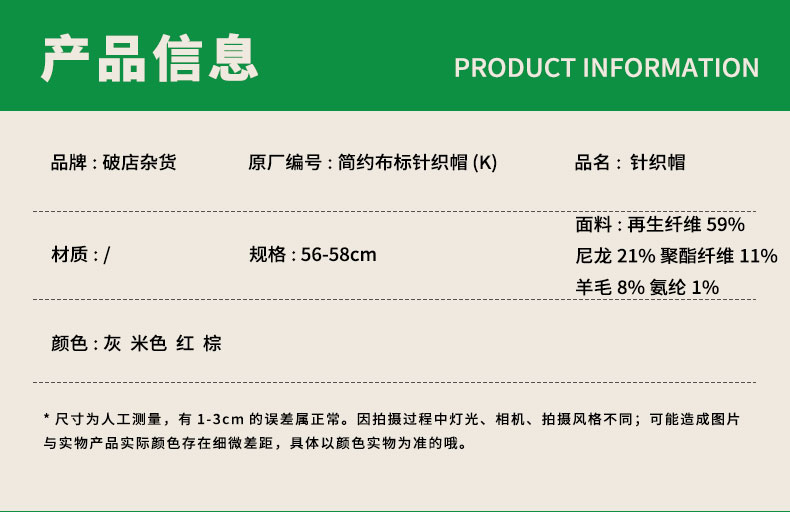 百搭气质简约布标针织帽-纪念日百货门店同款165199927