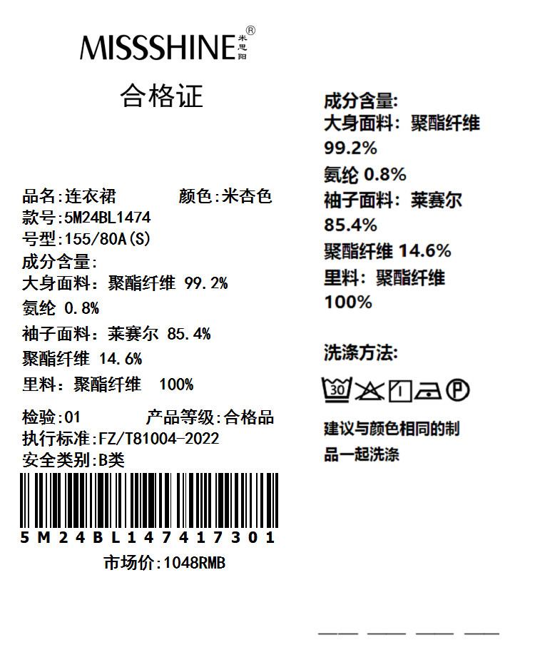 | 尺码 | 号型 | 肩宽(cm) | 胸围(cm) | 袖长(cm) | 腰围(cm) | 裙长(cm) |
