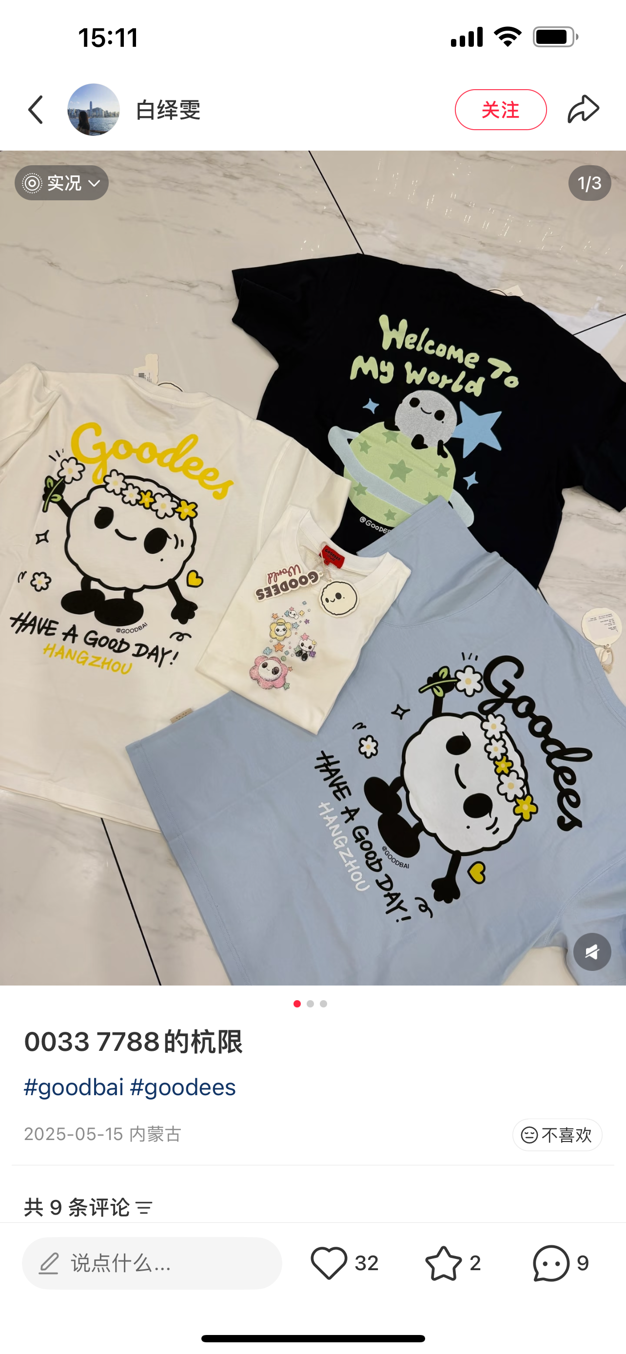 白敬亭的潮牌goodbai* 纯元,各个城市的门店限定款,数量不多的。