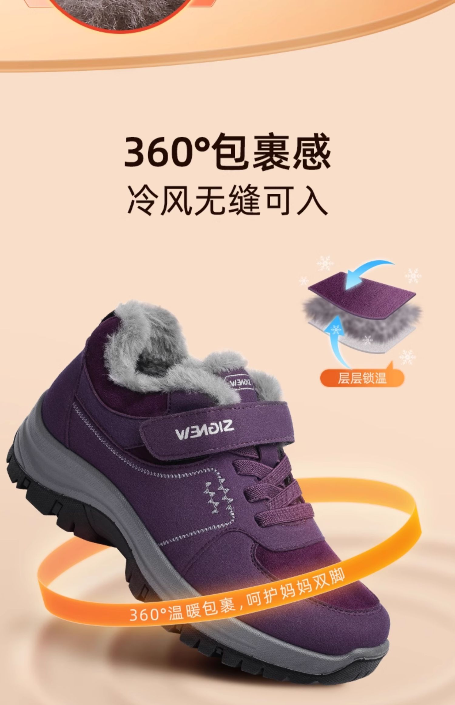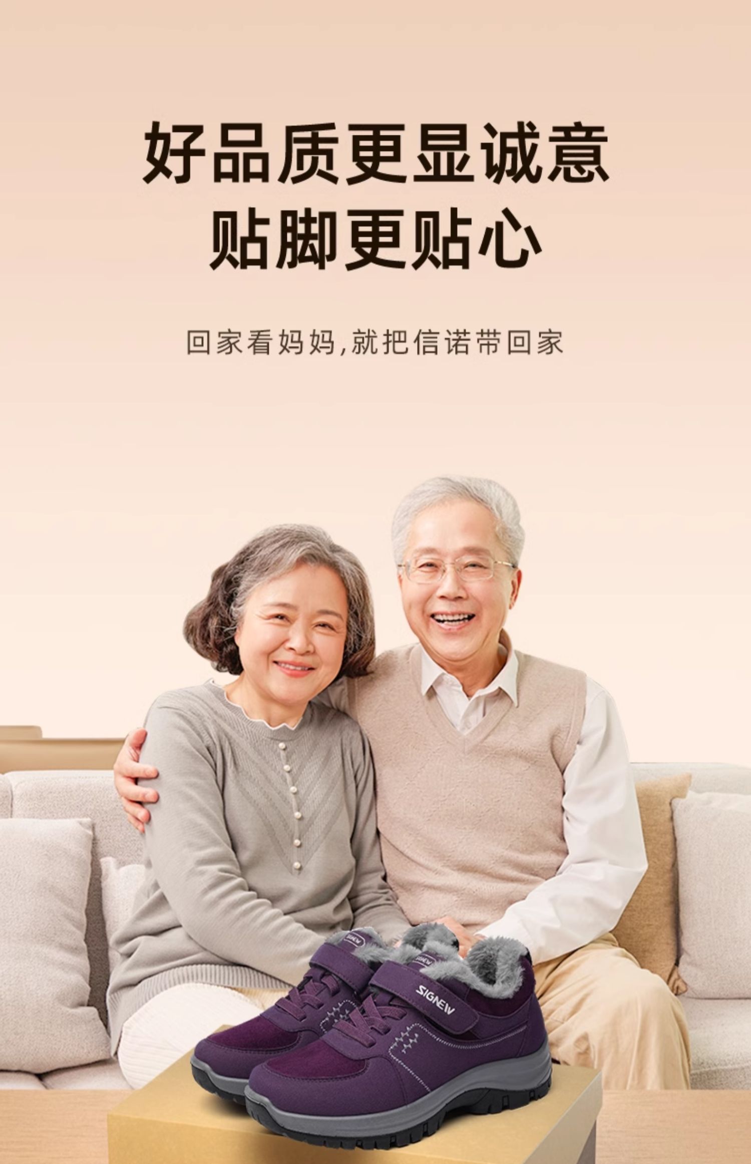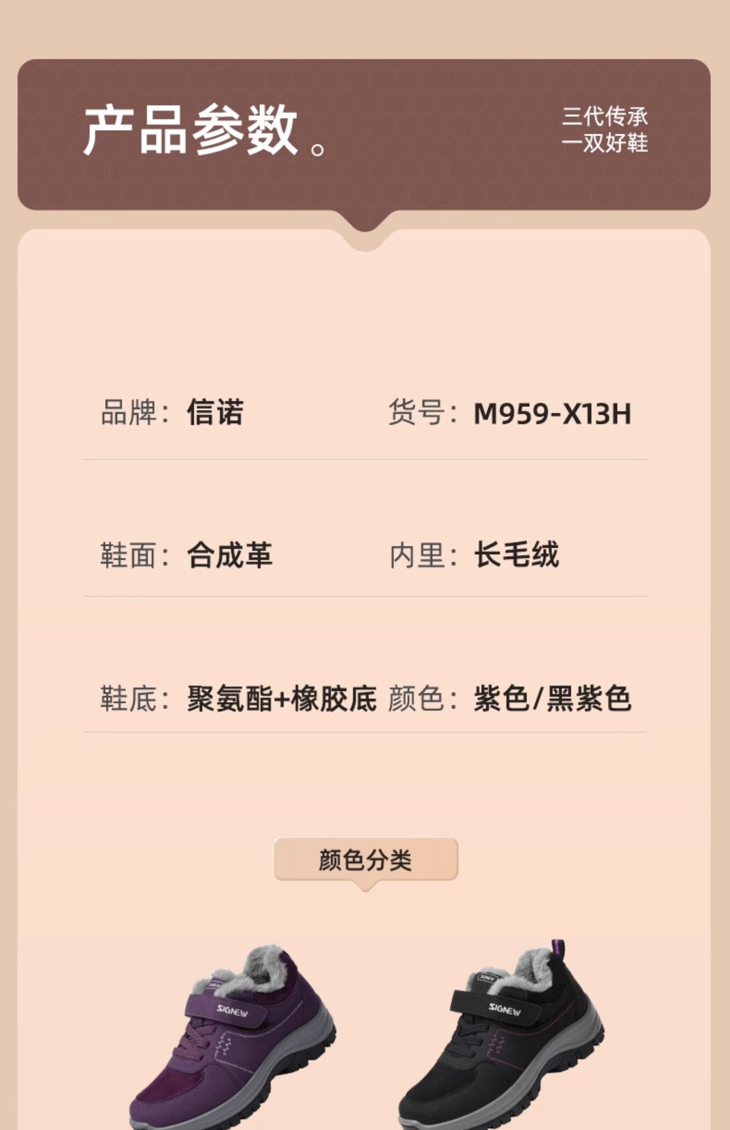 信诺舒适软底女鞋2024冬季新款加绒休闲运动鞋中老年人棉鞋健步鞋M959-X13H