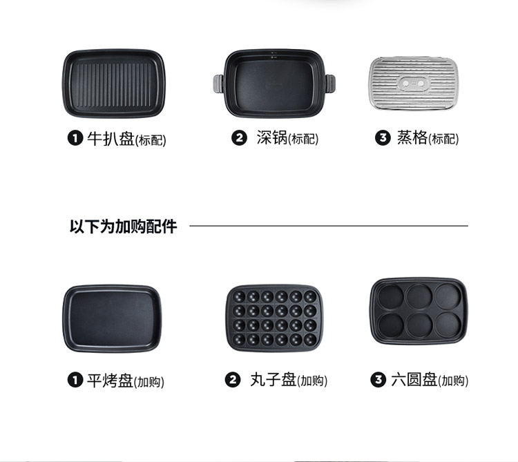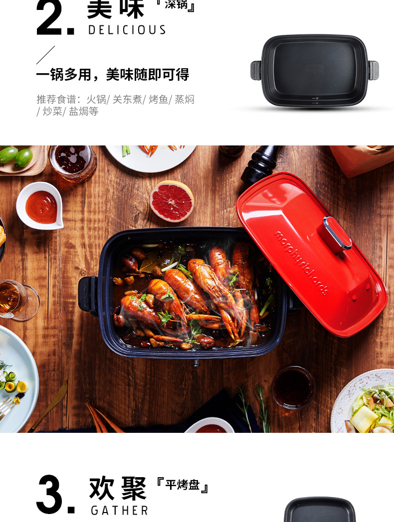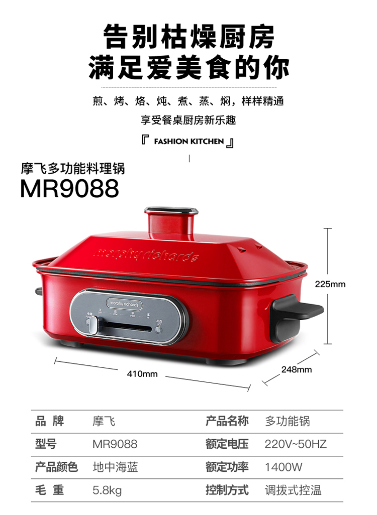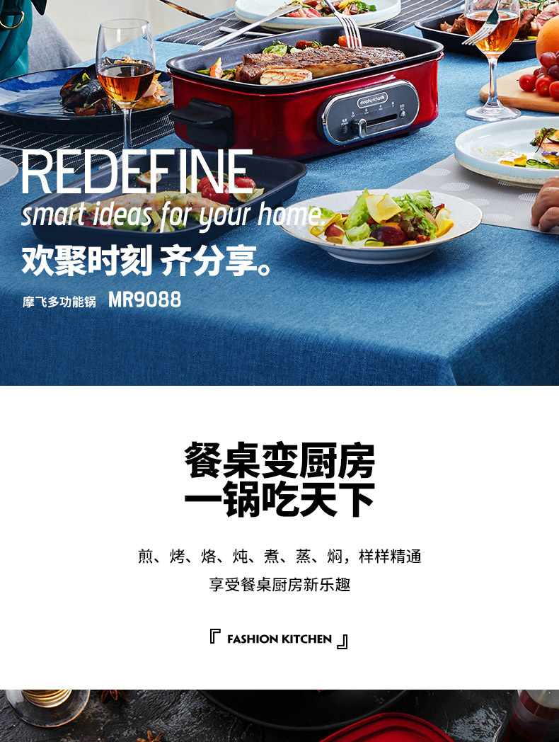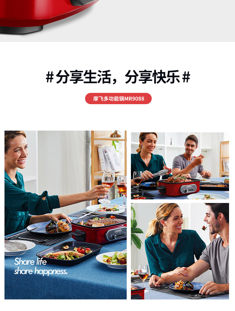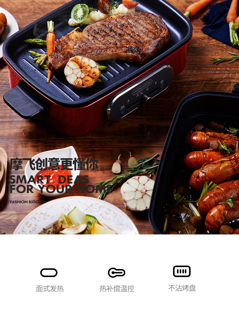 摩飞多功能锅多用途料理锅 电烧烤锅煎锅电火锅烧烤炉家用电蒸锅MR9088