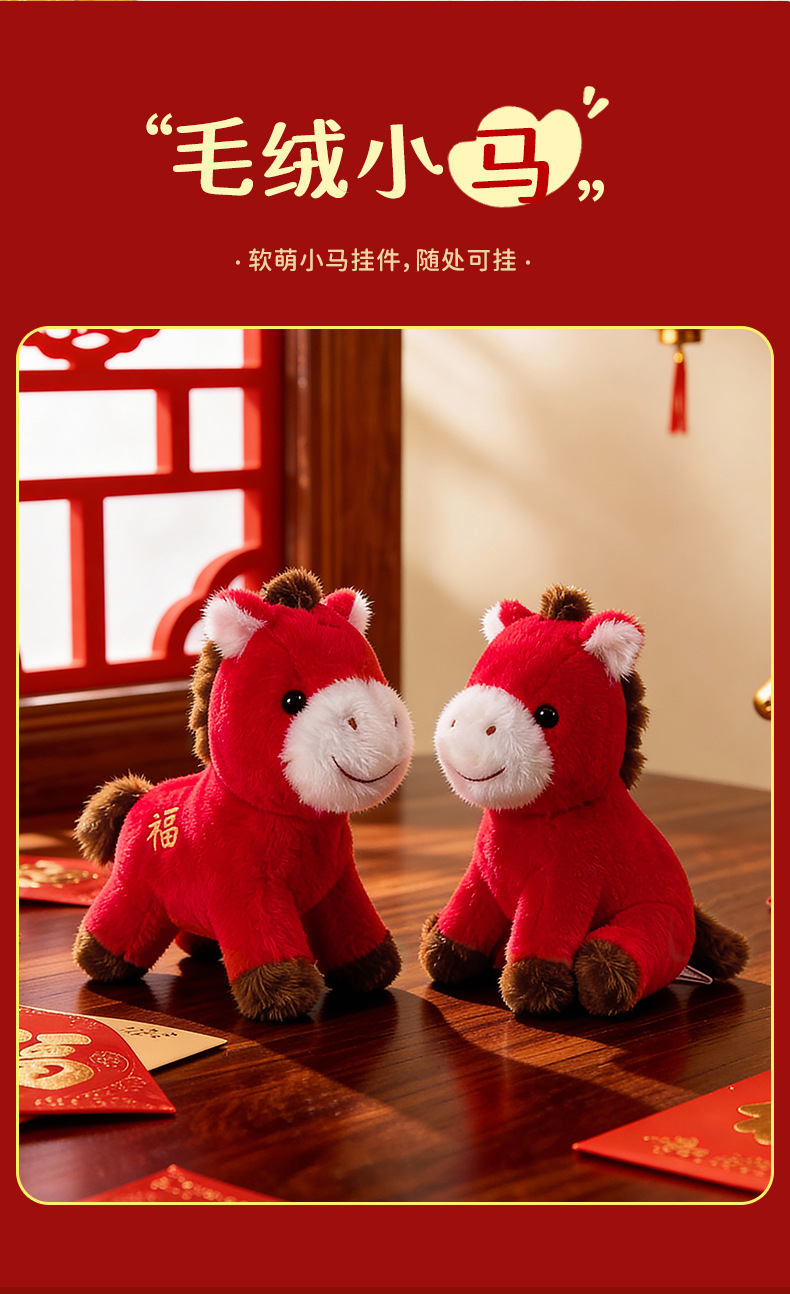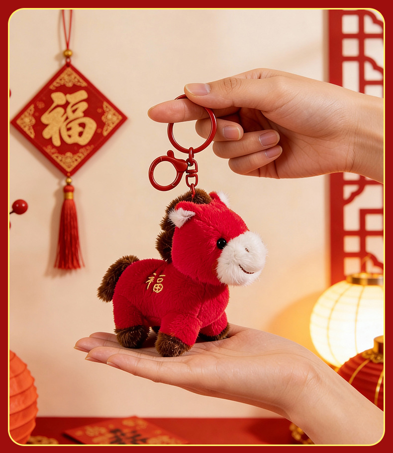【马上有福毛绒挂件】马年吉祥物 毛绒小马钥匙扣 新年礼物摆件 包包挂件装送人小饰品玩具