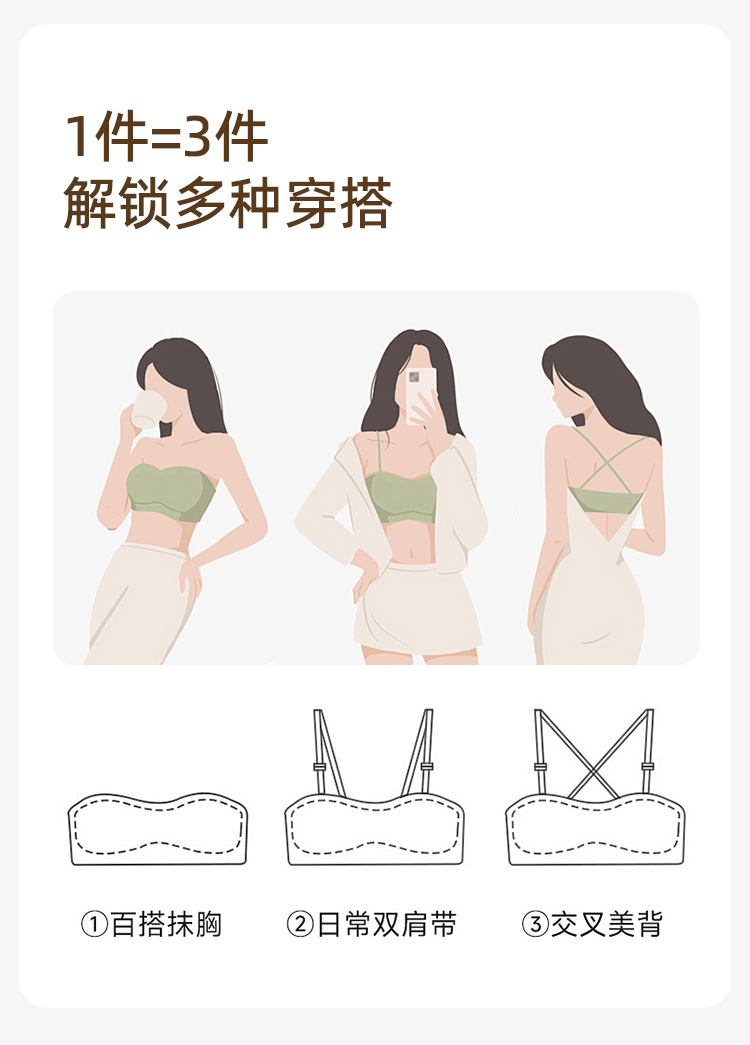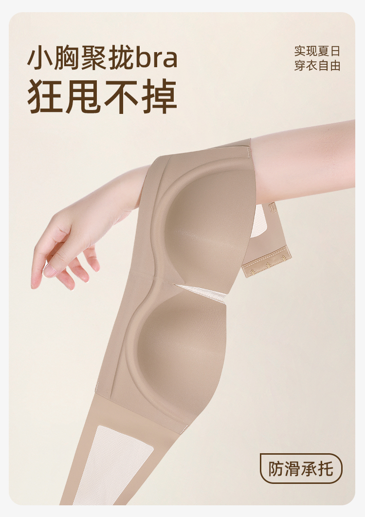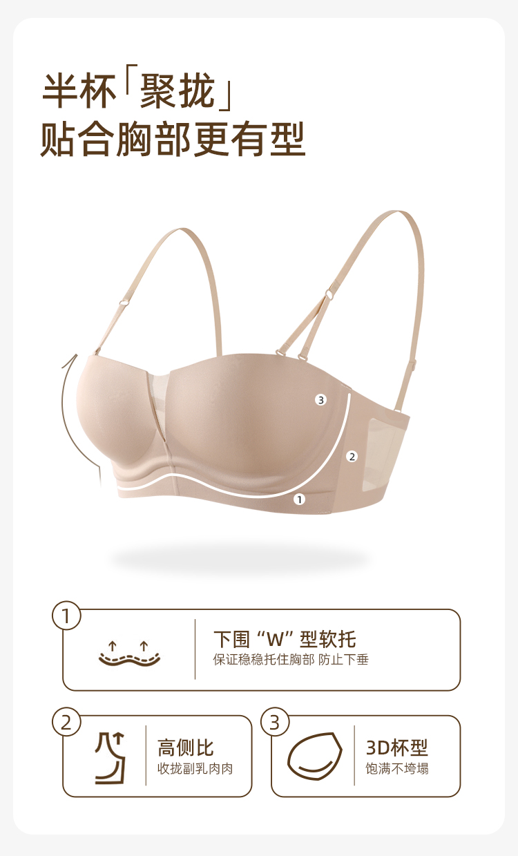 【无肩带内衣】熳洁儿 小胸聚拢光面半杯无痕防滑隐形可拆肩带文胸24761503