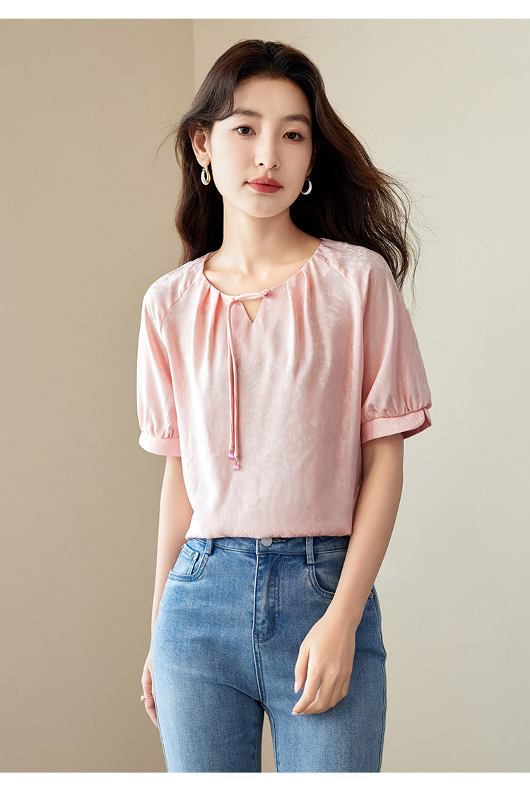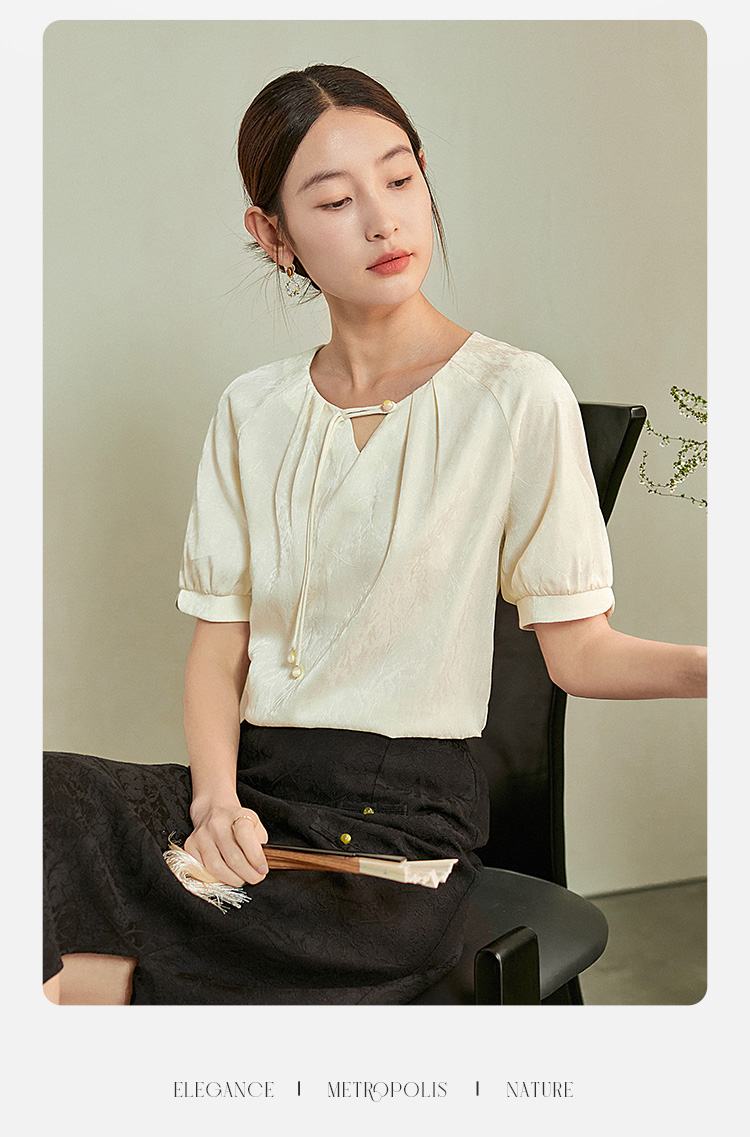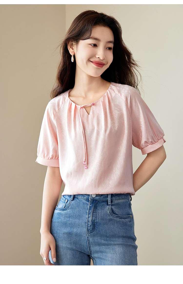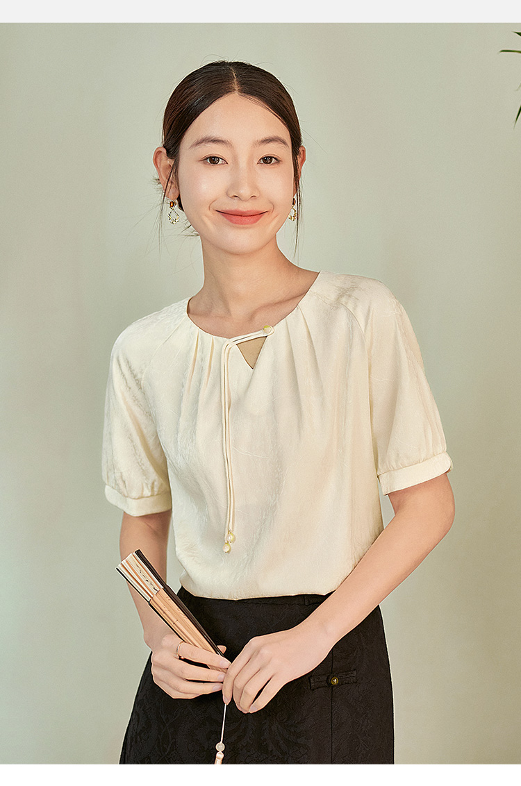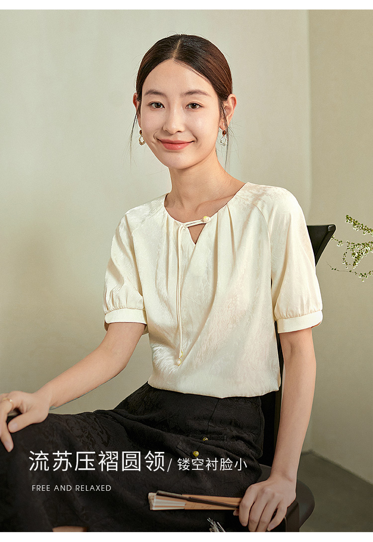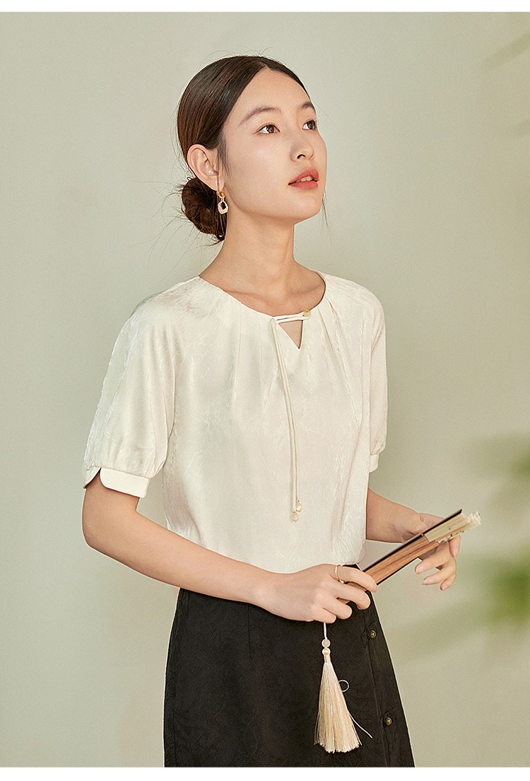 【专属特价】熙世界新中式流苏扣圆领提花短袖醋酸雪纺衬衫2025夏季国风上衣
