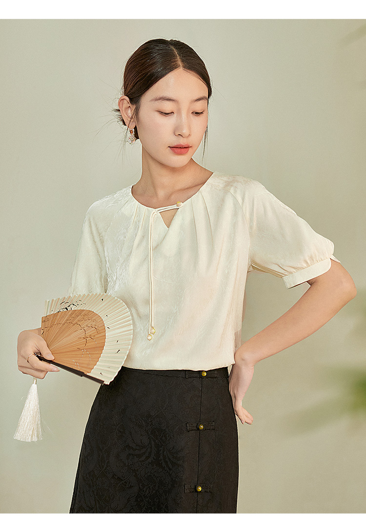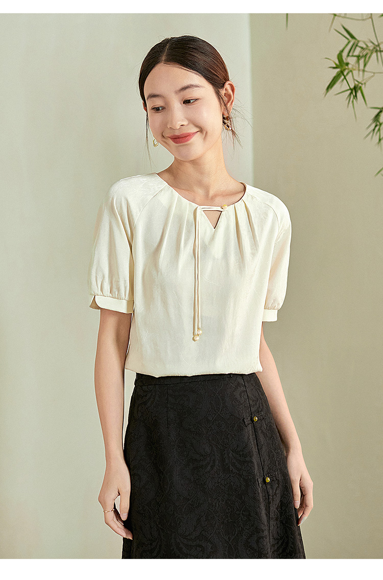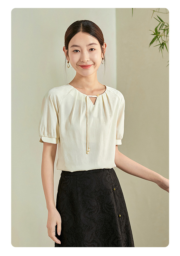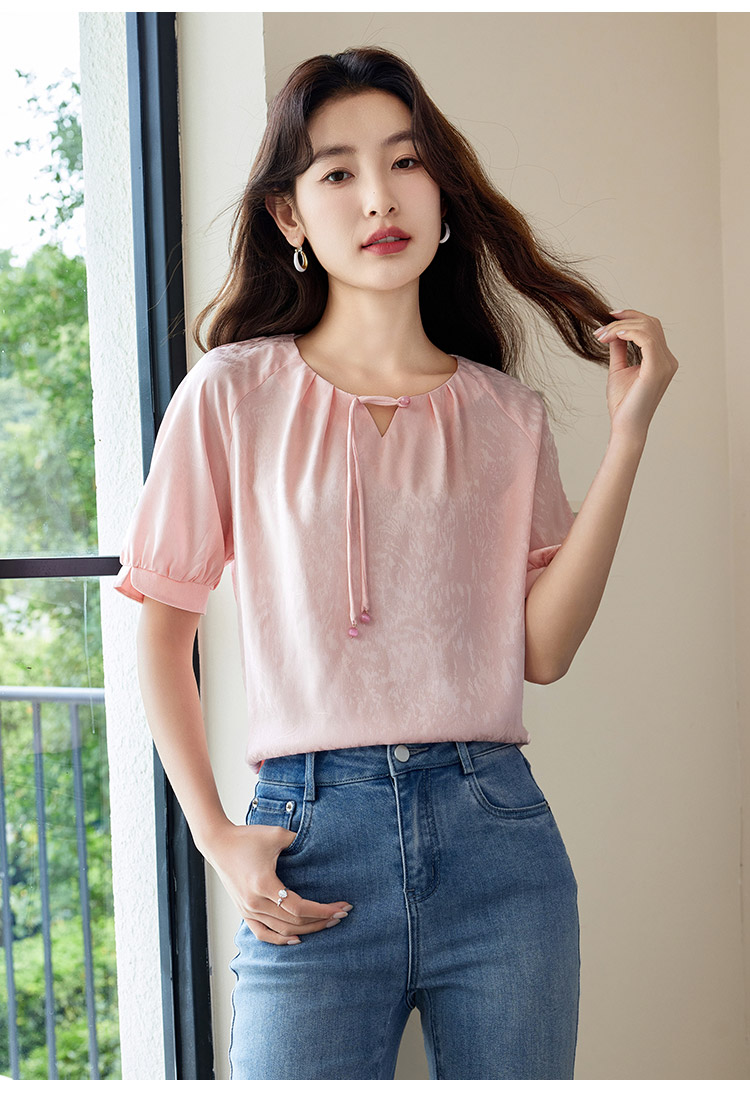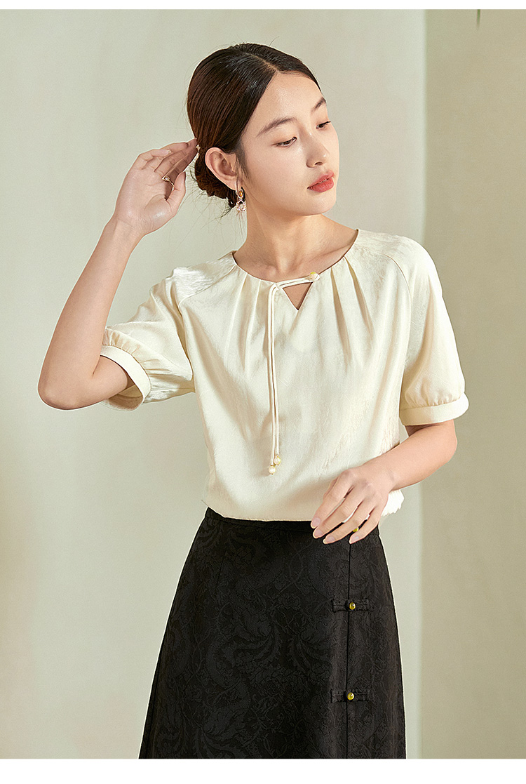 【专属特价】熙世界新中式流苏扣圆领提花短袖醋酸雪纺衬衫2025夏季国风上衣