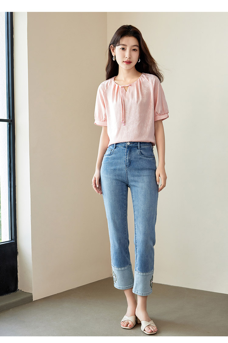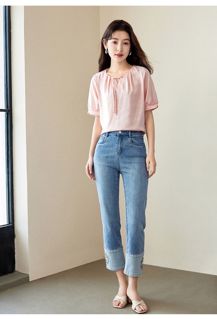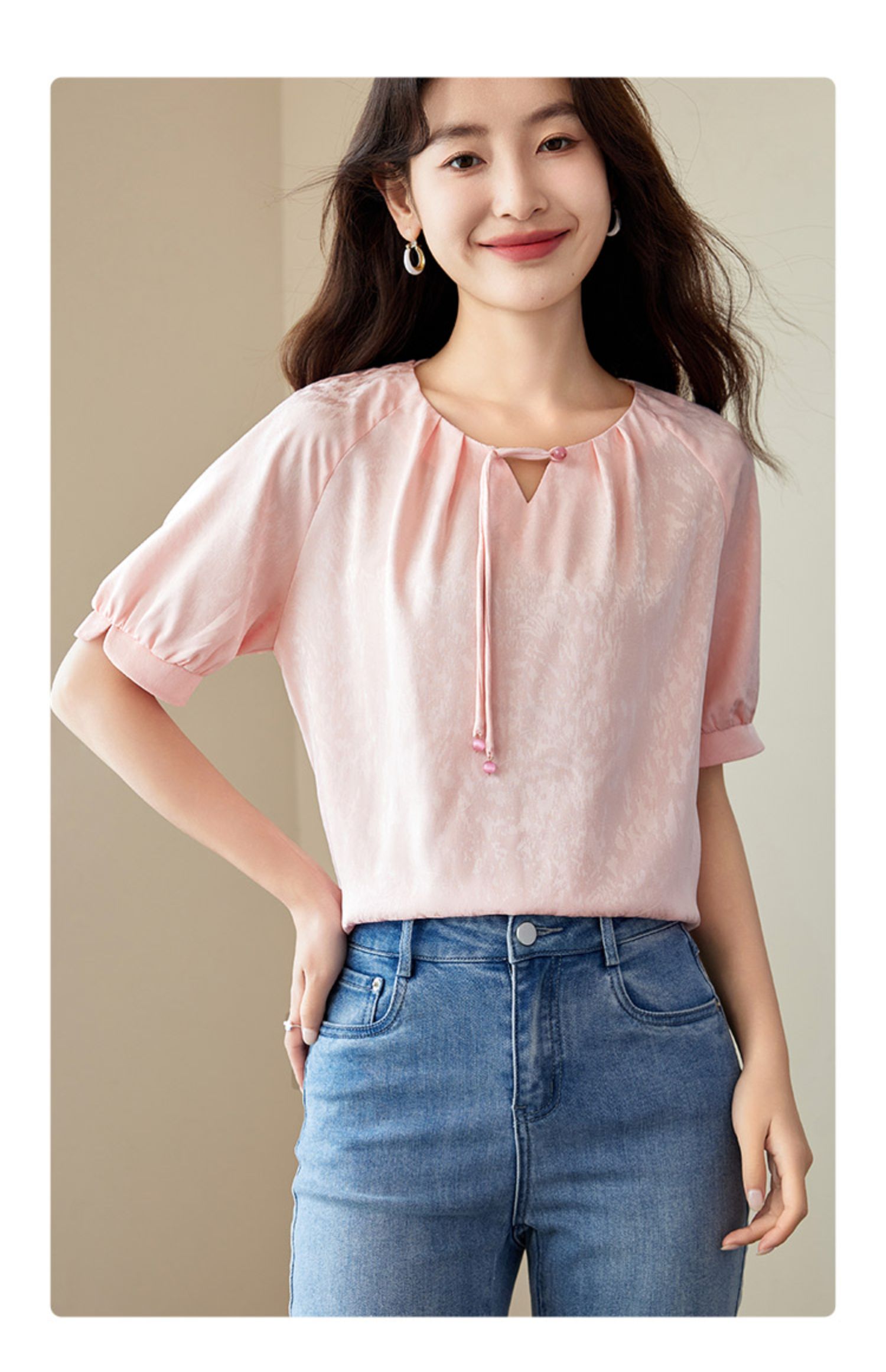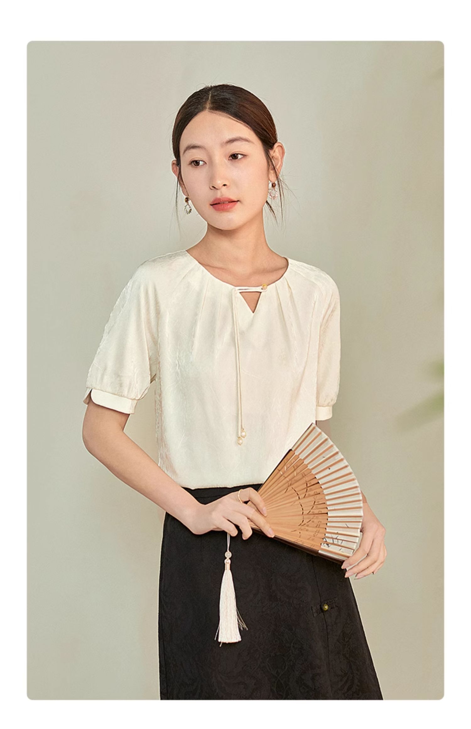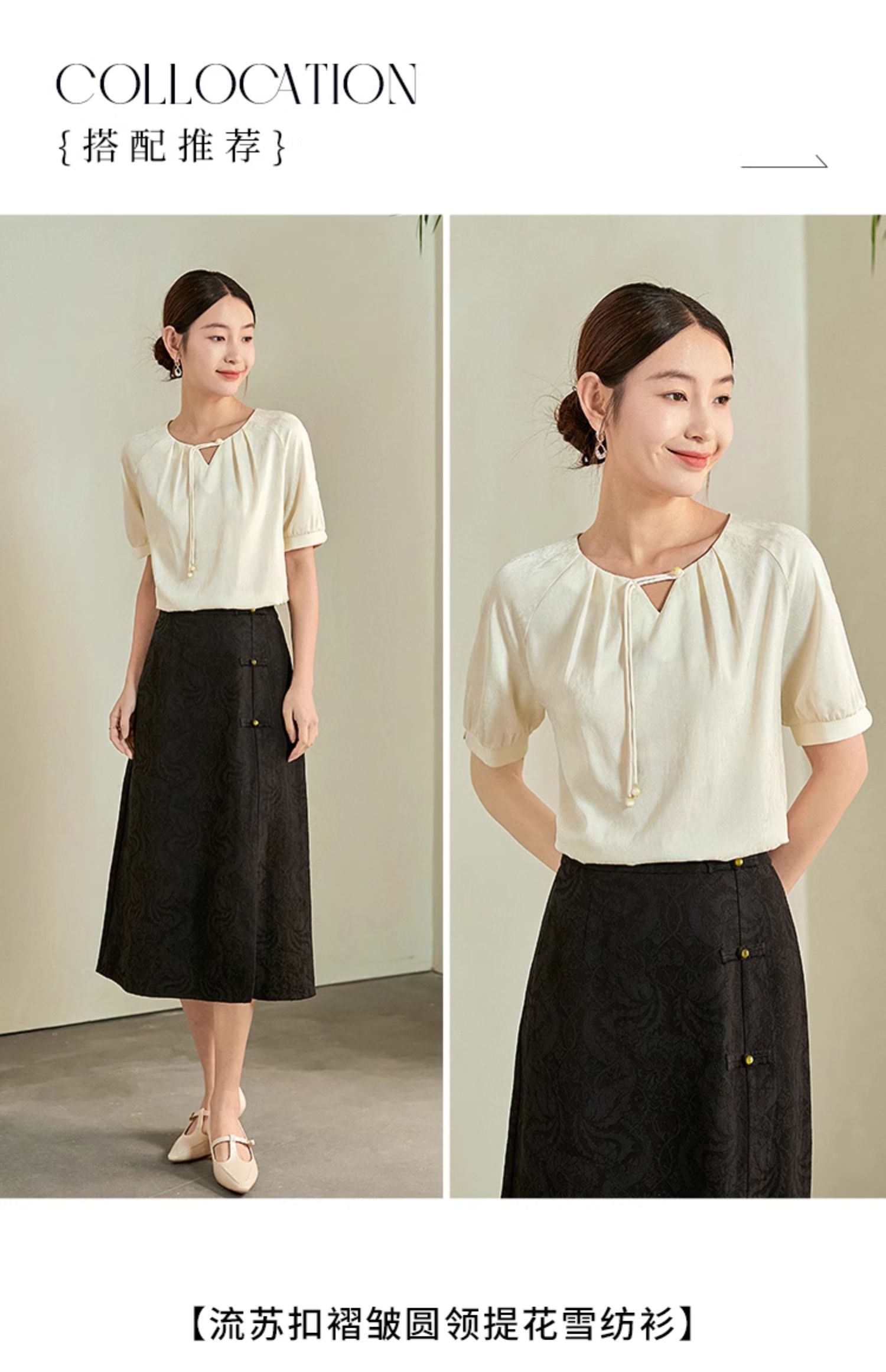 【专属特价】熙世界新中式流苏扣圆领提花短袖醋酸雪纺衬衫2025夏季国风上衣