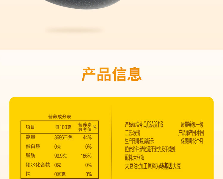 福临门 精选一级 大豆油5L 食用油 中粮出品 浸出工艺 商品图3